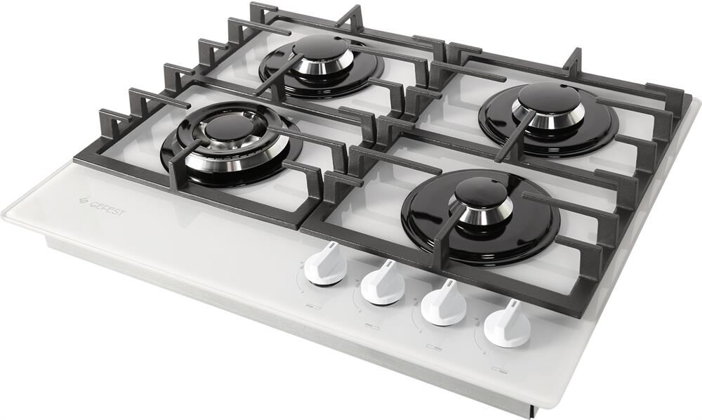 Размеры монтажного проема, ШхГ, см 55,4 х 48,6. Ширина, см 60. Глубина, см 52,5. Высота, см 10. Цвет модели Белый. Материал варочной поверхности Стекло. Материал решеток варочной поверхности Чугун. Двухзонная горелка варочной поверхности. Газ-контроль горелок стола. Электророзжиг горелок стола встроен в ручки. Управление конфорками стола Механическое. "Фиксированное положение ""малое пламя"".