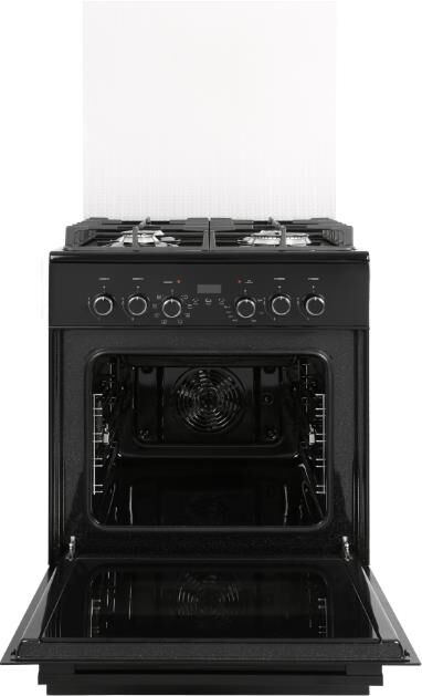 Габариты ШхГхВ, см: 60х60х85; Тип подключения: Газоэлектрический; Объем духового шкафа, л: 55; Количество газовых горелок варочной поверхности: 4; Конвекция; Цвет модели: Черный; Щиток: стекло; Материал варочной поверхности: Стекло; Материал решеток варочной поверхности: Чугун; Двухзонная горелка варочной поверхности; Газ-контроль горелок стола; Электророзжиг горелок стола: Розжиг встроен в ручки; Таймер: Сенсорный; Тип направляющих духового шкафа: Съемные проволочные; Тип очистки: Гидролизная; Внутреннее покрытие духового шкафа: Эмаль легкой очистки SMART CERAMIC; Количество стекол в дверце духового шкафа: 2; Тип духового шкафа: Электрический; Ящик для посуды и принадлежностей: Выдвижной ящик; Внутреннее освещение духового шкафа: Двойное; Контроль температуры духового шкафа: Термостат; Гриль: Электрический; Круговой ТЭН, Вт: 2000; Вертел; Шашлычница; Жаровня: 1; Противень:1; Решетка варочной поверхности: 1; Решетка духового шкафа: 1