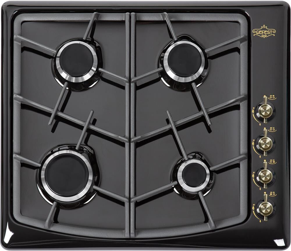 Габаритные размеры ШхГхВ: 59х51х9.5 см Цвет: черный глянцевый. Варочная поверхность: эмалированная. * Газ-контроль горелок стола * Чугунные решетки горелок стола * Фиксированное положение «малое пламя» * Электророзжиг горелок, встроенный в ручки