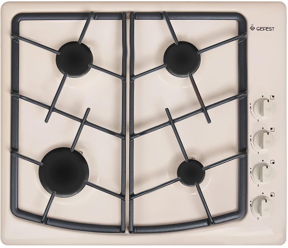 Габаритные размеры ШхГхВ: 59х51х9.5 см, Цвет: кремовый. Варочная поверхность: эмалированная., Газ-контроль горелок стола, Чугунные решетки горелок стола, Фиксированное положение «малое пламя», Электророзжиг горелок, встроенный в ручки