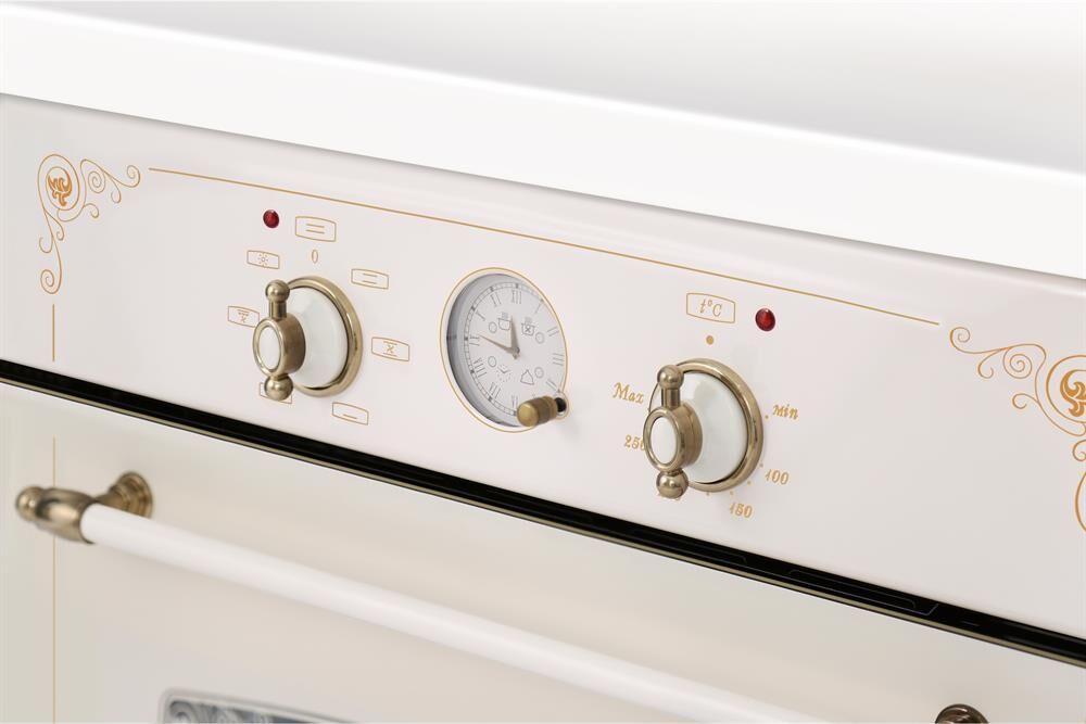 Духовой шкаф. Цвет: кремовый с рисунком "ретро". Габаритные размеры ШхГхВ: 59.8х56.5х59.5 см. Объём духовки: 55 л. Гриль электрический. Таймер аналоговый. Подсветка духовки двойная. Усиленный гриль с конвекцией. Съемные проволочные направляющие духовки. Масса нетто, 33,1кг. Диапазон номинальных напряжений, В: 220-230. Фасад: эмалированный. Сетевой шнур и вилка: в наличии. Класс электробезопасности: I.