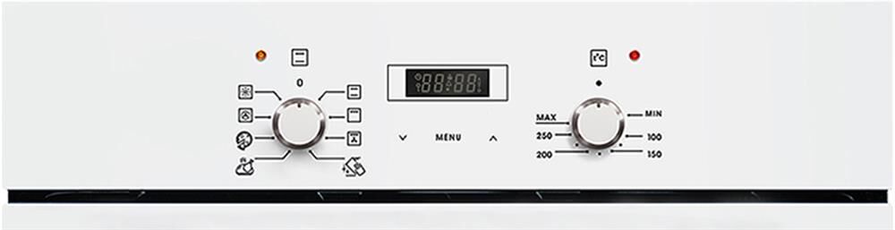 Духовой шкаф. Цвет: белый. Габаритные размеры ШхГхВ: 59.8х56.5х59.5 см. Объём духовки: 55 л. Гриль электрический. Таймер сенсорный. Подсветка духовки двойная. Телескопические направляющие. Съемные проволочные направляющие духовки. Усиленный гриль с конвекцией. Класс электробезопасности: I.