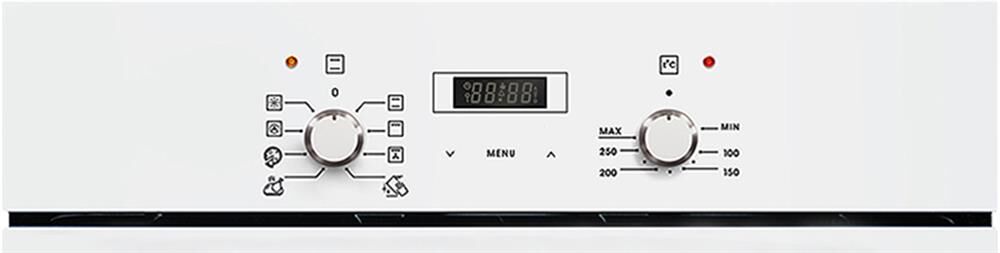 Духовой шкаф. Цвет: белый. Габаритные размеры ШхГхВ: 59.8х56.5х59.5 см. Объём духовки: 55 л. Внутреннее стекло с термоотражающим покрытием. Съемные проволочные направляющие духовки. Гриль электрический. Таймер сенсорный. Доводчик «Soft-Close». Телескопические направляющие. Подсветка духовки двойная. Усиленный гриль с конвекцией. Фасад: стеклянный. Класс электробезопасности: I.
