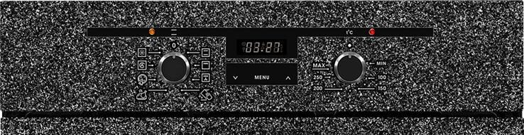 Духовой шкаф. Цвет: черный с рисунком "камень". Габаритные размеры ШхГхВ: 59.8х56.5х59.5 см. Объём духовки: 55 л. Гриль электрический. Таймер сенсорный. Подсветка духовки двойная. Телескопические направляющие. Съемные проволочные направляющие духовки. Усиленный гриль с конвекцией. Класс электробезопасности: I.