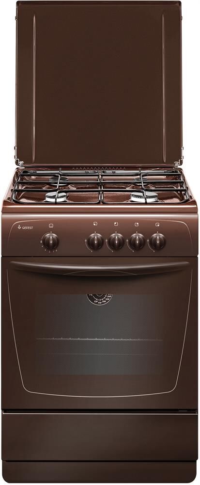 Габариты ШхГхВ: 60х60х85см; Цвет: коричневый; Объем духовки, л: 63; Количество зон приготовления: 4; Варочная поверхность: эмалированная; Фасад: эмалированный; Крышка: металлическая; Класс электробезопасности: II; Газ-контроль духовки; Штампованные направляющие духовки; Стальные решетки горелок стола; Ящик для посуды и принадлежностей с откидной крышкой; Термоуказатель духовки
