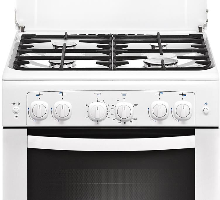 Габаритные размеры: 60х60х85 см Цвет: белый Объем духовки, л: 52 Количество зон приготовления: 4 Варочная поверхность: эмалированная Фасад: эмалированный Крышка: металлическая крышка Вертел с электроприводом Съемные проволочные направляющие духовки Выдвижной ящик для посуды и принадлежностей Таймер механический Газ-контроль духовки Терморегулятор (термостат) Гриль Ножки регулировочные Электророзжиг горелок, кнопка розжига на панели Подсветка духовки двойная Электророзжиг духовки, кнопка розжига на панели