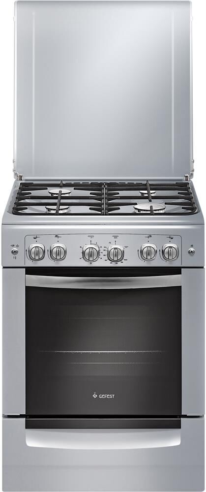 Габариты (ШхГхВ) 60x60x85 см. 4 газ. горелки. Электророзжиг горелок стола. Вароч. поверхность эмалированная. Решетки горелок стола чугунные. Таймер механический. Объем духовки 52л. Электророзжиг духовки. Газ-контроль духовки. Вертел с электроприводом. Подсветка духовки двойная. Направляющие духовки проволочные. Терморегулятор (термостат). Ящик для посуды и принадлежностей. Метал. крышка. Цвет серый.