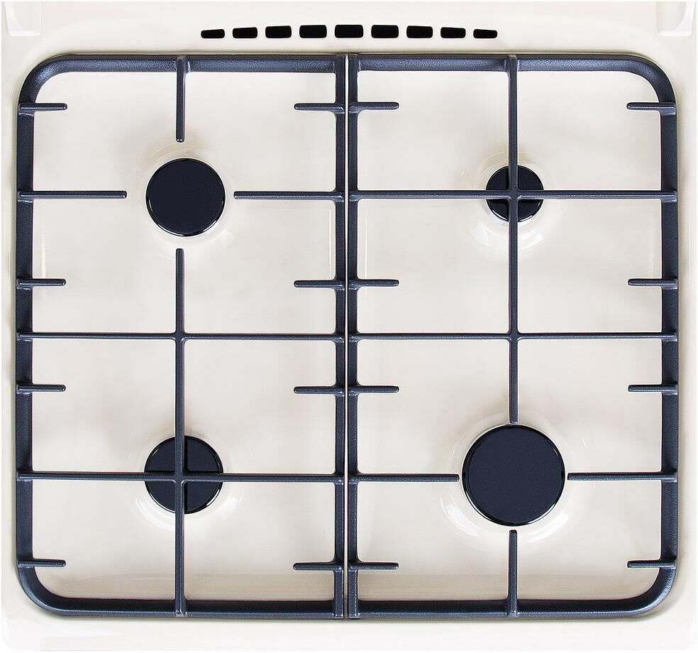 Габариты (ШхГхВ) 60х60х85см, Цвет: кремовый Дизайн: ретро Объем духовки, л: 52 Количество зон приготовления: 4 Варочная поверхность: эмалированная Фасад: эмалированный Крышка: стеклянная крышка Класс электробезопасности: I Вертел с электроприводом Съемные проволочные направляющие духовки Выдвижной ящик для посуды и принадлежностей Таймер механический Газ-контроль духовки Терморегулятор (термостат) Гриль Ножки регулировочные Электророзжиг горелок, кнопка розжига на панели Подсветка духовки двойная Электророзжиг духовки, кнопка розжига на панели