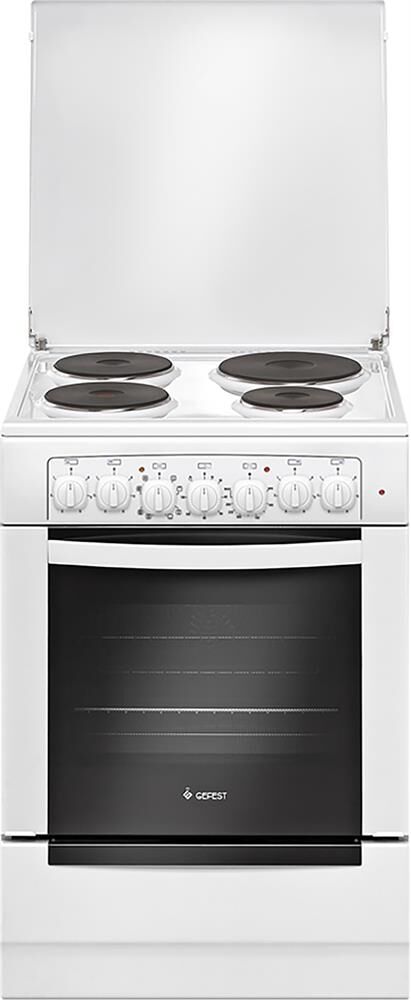 Габариты, ШхГхВ, см: 60x60x85; Цвет: белый; Дизайн: классический; Ширина, см: 60; Фасад: эмалированный; Варочная поверхность: эмалированная; Крышка стола: металлическая крышка; Количество зон приготовления: 4; Класс энергоэффективности: А; Диапазон номинальных напряжений, В: 220-230; Номинальная потребляемая мощность электроэнергии, кВт: 6,02-6,58; Объем духовки, л: 55; Конвекция; Мощность верхнего ТЭН духовки, кВт: 0,8; Мощность нижнего ТЭН духовки, кВт: 1,2; ТЭН-гриль: 1,2; Управление: механическое; Таймер: электромеханический; Гриль: электрический; Ускоренный гриль с ковекцией; Подсветка духовки: двойная; Направляющие духовки: съемные проволочные; Терморегулятор; Ящик для посуды и принадлежностей: выдвижной ящик; Ножки регулировочные; Сетевой шнур и вилка: в наличии; Комплектность: решетка духовки, жаровня 2 шт