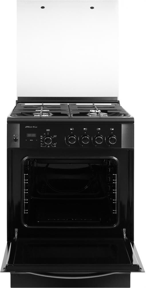 Габариты, ШхГхВ, см: 60x60x85; Цвет: черный; Дизайн: классик; Ширина, см: 60; Фасад: закаленное стекло; Варочная поверхность: эмалированная; Решетки стола: чугунные; Крышка стола: стеклянная; Класс электробезопасности: I; Объем духовки, л: 52; Мощность горелки духовки, кВт: 3,1; Мощность гриль-горелки, кВт: 1,9; Таймер: сенсорный; Газ-контроль духовки; Газ-контроль горелок стола; Электророзжиг духовки: встроен в ручку; Электророзжиг горелок стола: встроен в ручки; Гриль: газовый; Вертел с электроприводом; Подсветка духовки; Направляющие духовки: съемные проволочные; Терморегулятор (термостат); Ящик для посуды и принадлежностей: выдвижной; Ножки регулировочные; Сетевой шнур и вилка: в наличии; Стекло дверцы духовки: двойное; Комплектность: жаровня, противень, решетка духовки; Комплект сменных сопел