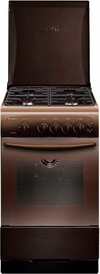 Габаритные размеры ШхГхВ: 50х57х85 см * Цвет: коричневый. Варочная поверхность: эмалированная * Полезный объём духовки: 42 л * Выдвижной ящик для посуды и принадлежностей * Подсветка духовки одинарная * Газ-контроль горелок стола * Термоуказатель духовки * Газ-контроль духовки * Чугунные решетки горелок стола * Ножки регулировочные * Электророзжиг горелок, кнопка розжига на панели *