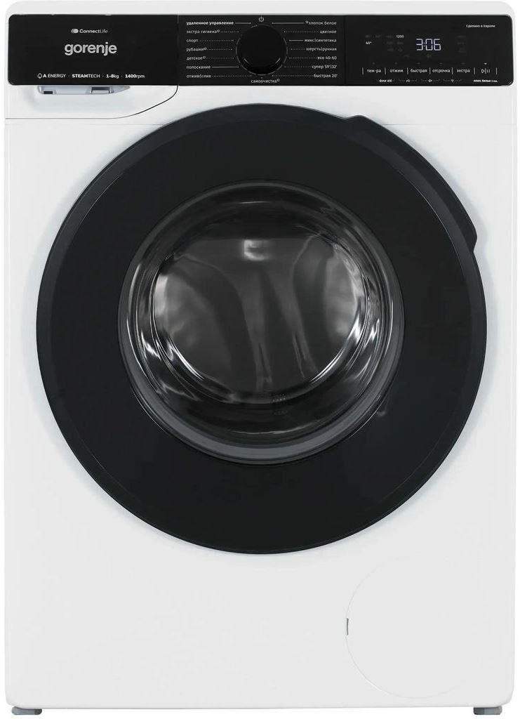 GORENJE Стиральная машина WPNA84A2TWIFI/C, с фронтальной загрузкой, 8кг, 1400об/мин, с паром, инверт