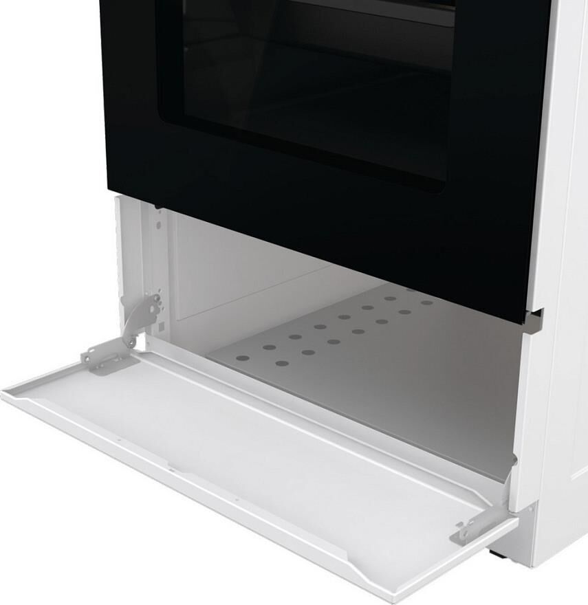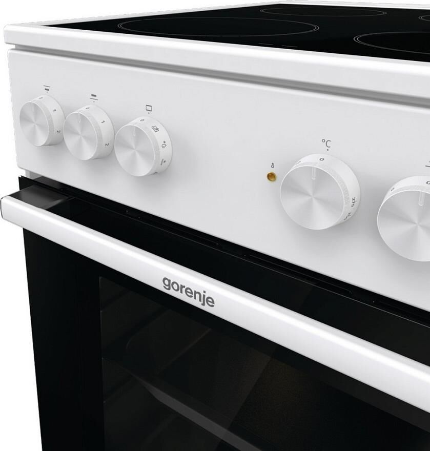 (В*Г*Ш) 85*59.4*50 см. Цвет белый. Тип варочной панели электрическая. Тип управления механическое. Переключатели поворотные. Общее количество конфорок 4. Материал рабочей поверхности стеклокерамика, духовка электрическая. Объем духовки 62 л. Гриль электрический. Конвекция. Количество стекол дверцы духовки два. Дверца откидная Очистка духовки гидролизная.