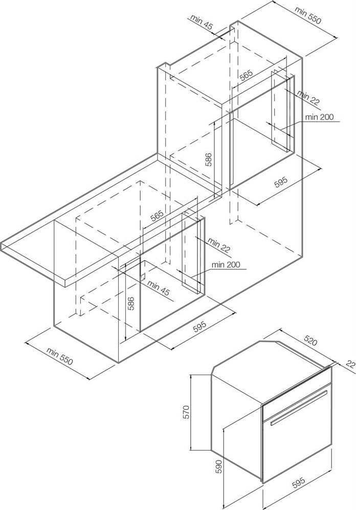 3 режима нагрева, Управление Classic Control, Дверца с 2х-слойным остеклением, 4 уровня приготовления, Алюминиевая ручка, Стеклянный фронт ClearView, Система охлаждения, Таймер, Полезный объем: 60 л, Максимальная температура: 250°C, Ш х Г х В = 595 х 590