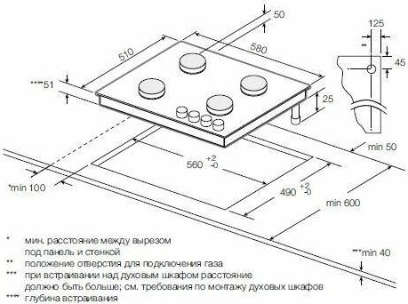 Газовая варочная панель , Нержавеющая сталь. Оригинальные конфорки SABAF. 1 конфорка WOK 3,8 кВт. 2 стандартные конфорки 1,75 кВт. 1 экономичная конфорка 1,0 кВт. Чугунные решетки. Система GasControl.Электроподжиг.ШхВхГ=580*56х510 мм.Форсунки для сжиженно