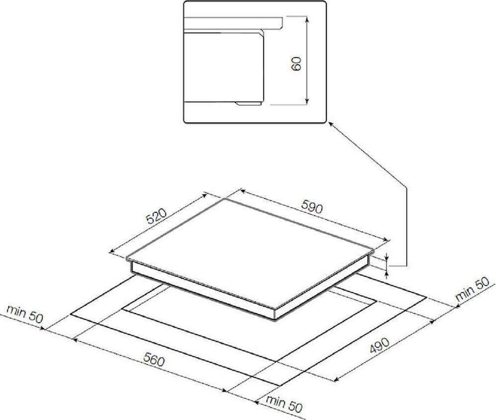 "• Сенсорное управление • 9 ступеней нагрева • Функция таймера • Функция Booster • Функция распознавания посуды • Индикация остаточного тепла • Автоматическое отключение • Защита от детей • Исполнение: без рамки • Ш х В х Г= 590 х 60 х 520 мм"