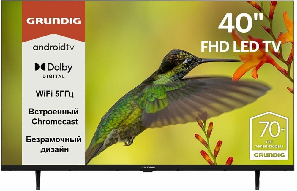 Тип экрана LED Диагональ 40 " Размер экрана 100 см Разрешение экрана FHD Разрешение 1920 x 1080 Пикс Технология экрана LED Поддержка расширенного цветового диапазона (Wide Color Gamut) Нет Тип подсветки экрана DIRECT LED Частота обновления экрана 60 Гц Значение интерполяции 700 Гц Цифровое шумоподавление Да Общая мощность акустической системы 16 Вт Система динамиков 2.0 Мощность фронтальных АС 16Вт (2х8Вт) Поддержка Smart TV Да Версия ОС Android TV 11 Оперативная память 1 Гб Встроенная память 8 Гб Аналоговый тюнер PAL/SECAM Да Тюнеры DVB-T2/C/S2 Да Поддержка Wi-Fi 2.4 GHz / 5 GHz WiFi Встроенный модуль Bluetooth Bluetooth 5.0 LAN разъем (RJ45) 1 шт Версия HDMI 2.0 Вход HDMI 2 шт Технология HDMI eARC / ARC ARC Смартфон в качестве пульта ДУ Да Тип пульта дистанционного управления в комплекте Инфракрасный (ИК) Параметры кронштейна (VESA) 200 х 100 мм Номинальная потребляемая мощность 36.1 Вт