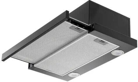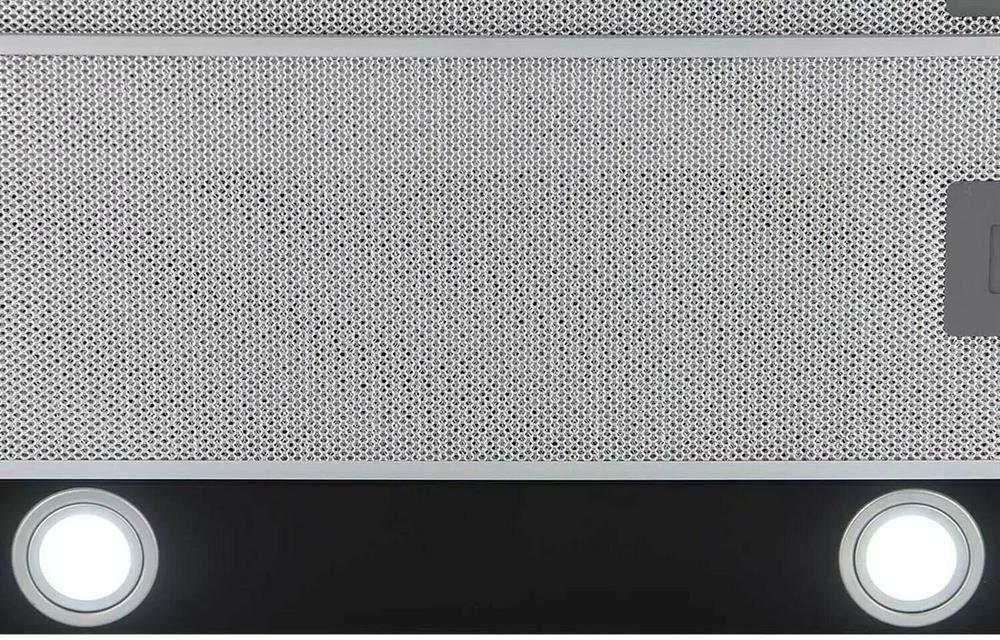 Режимы работы: отвод/циркуляция. Регулировка уровня мощности: есть. Управление: кнопочное. Количество двигателей: одномоторная. Количество регулировок мощности: 2. Диаметр штуцера для отвода воздуха: 150 мм. Максимальная производительность: 700. Уровень шума: 58. Встроенная подсветка: есть. Тип подсветки: светодиодное. Тип фильтра: алюминиевый жироулавливающий. Мощность подключения: 122. Вес (нетто): 6.2. Угольный фильтр: отсутствует. Размеры: 59.8×19.5×40см. Габариты упаковки (ед) ДхШхВ: 0.67×0.261×0.37. Вес упаковки (ед): 7.2. Подключение к электросети: кабель с вилкой. Гарантия: 12 мес.. Мощность подсветки: 2 х 1 Вт. Размеры секции для встраивания (ШхВхГ): 50.3 х 28 мм. Цвет: черный. Количество двигателей: одномоторная. Производительность: максимальная производительность 700 м3/час. Уровень шума: 58 дБ. Управление: кнопочное; регулировок мощности 2. Освещение: светодиодное. Режимы работы: отвод/циркуляция