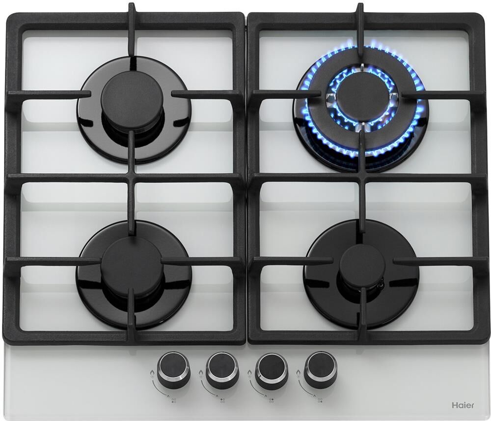 HAIER Газовая варочная панель HHX-G64CWW, 4 конфорки, закаленное стекло, белый