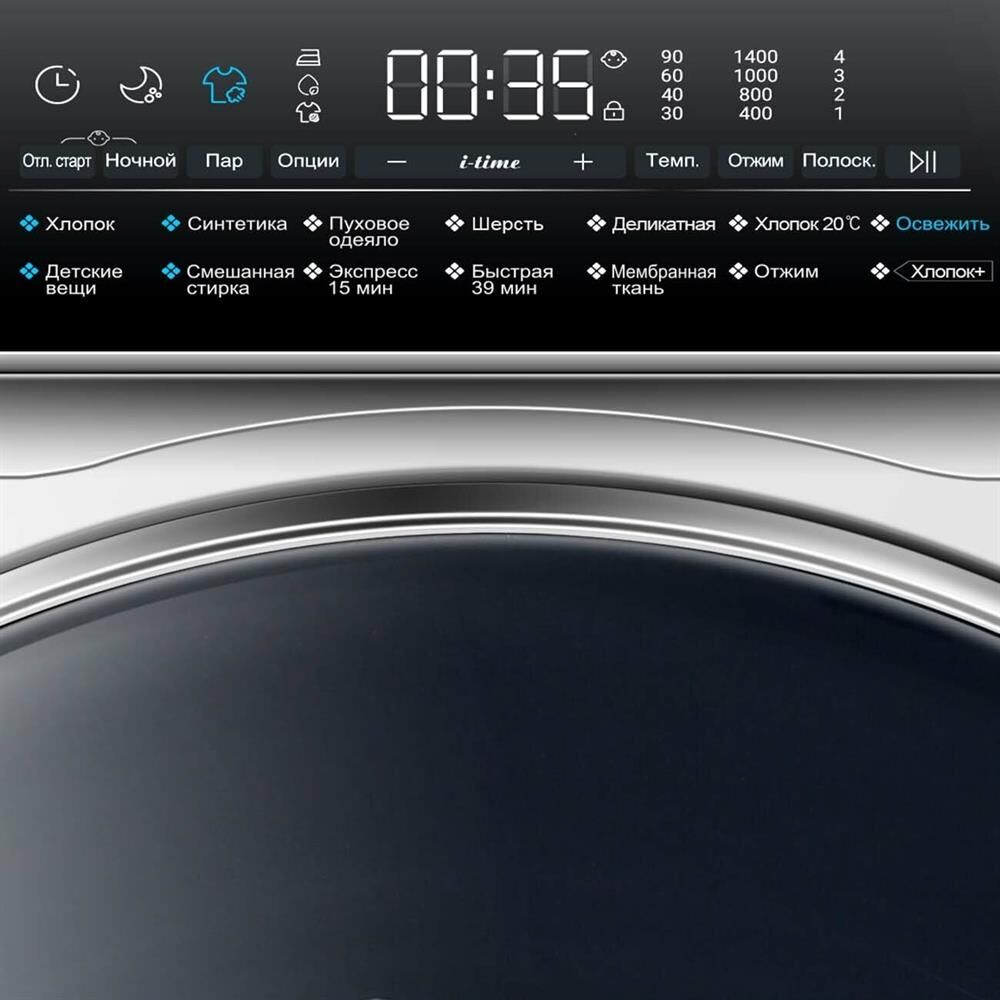 Тип загрузки: фронтальная. Максимальная загрузка: 10. Максимальная скорость отжима: 1400. Диаметр загрузочного люка: 63.1. Тип управления: электронное. Класс стирки: A. Класс отжима: B. Класс энергопотребления: A+++. Цвет: белый. Регулируемая скорость отжима: 0/400/800/1000/1400. Уровень шума при стирке: 55. Уровень шума при отжиме: 74. Потребляемая мощность: 2000. Расход воды: 49. Количество программ: 14. Описание программ: Освежить, Быстрая стирка 39 мин, Синтетика, Смешанные ткани, Деликатная стирка, Шерсть, Детские вещи, Экспресс-стирка 15 мин, Отжим, Хлопок, Хлопок+, Хлопок 20С, Одеяла, Мембранная ткань. Описание режимов: Дополнительное полоскание, Стирка с паром, Автовзвешивание. Цвет люка: черный. Вес (нетто): 86. Максимальное время отсрочки старта: 24. Обработка паром: есть. Габариты упаковки (ед) ДхШхВ: 0.79×0.66×1.1. Вес упаковки (ед): 106. Страна производства: Китай. Глубина с учетом выступающих элементов: 57.6. Направление открывания люка: влево. Инверторный мотор: есть. Частота электросети: 50 Гц