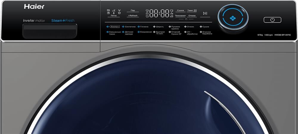 HAIER Стиральная машина HWD80-BP14979S, с фронтальной загрузкой, 8кг, 1400об/мин, с паром, с сушкой,