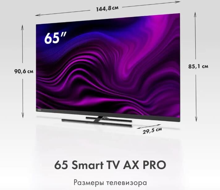Диагональ: 65" (16:9) Разрешение: 3840х2160 Яркость: 350 кд/м2 Контрастность: 4000:1 Угол обзора: 176/176 ° Время отклика: 8 мс Разъемы (вход): HDMI 2.1 х 4, USB 2.0 х 2, вход для антенны х 2, композитный, CI+, аналоговый, Ethernet Разъемы (выход): оптический, выход для наушников Изображение: Тип подсветки: Direct LED Частота обновления: 60 Гц Режимы изображения: 7 Широкоформатные режимы изображения: 8 HDR-Dolby Vision Цифровое шумоподавление HDR 10 Upscaling 4K UHD Системы вещания: Поддержка: DVB-T, DVB-T2, DVB-S2, DVB-C Аналоговый: PAL/SECAM/NTSC Звук: Тип колонок: стерео Выходная мощность аудио: 26 Вт Количество колонок: 2 Количество режимов аудио: 8 Dolby Atmos Эквалайзер dbx tv Объемный звук Автоматический контроль звука SMART TV : Операционная система: Android TV Сетевые функции: Wi-Fi, Bluetooth 5.0 Поддержка YouTube Поддержка Google Play Store Поддержка Google Play Movies Поддержка Google Play Music Поддержка Google Play Games Особенности: Энергопотребление: 200 Вт