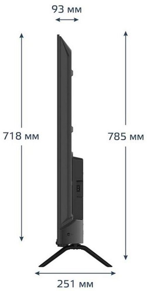 Диагональ экрана 55" (138 см)UHD Frameless official google android11 TV/ voice assistant , memory-2GB+16GB Системы цветности аналогового ТВ: SECAM, PAL Системы цветности для AV: NTSC, PAL Цифровой тюнер DVB-T/T2/C/S2 SMARTTV Wi-Fi Декодеры стереозвука NICAM, А2, АСЗ Формат изображения: 16:9 Разрешение экрана 3840х2160 Динамический контраст 140000:1 Яркость 300 кд/м2 Угол обзора (гор/верт) 178°/178° Цифровой 3D фильтр Количество цветов 1 млрд. Время отклика 8 мс Меню на русском, английском языках Телетекст Аудио 2 х 8 Вт Входы/выходы: Антенный вход Вход для спутниковой антенны Композитный видео/аудио вход 3х HDMI 2 х USB S/PDIF (Оптический) LAN CI слот Размеры с подставкой: 1225х785х251 мм Размеры без подставки: 1225х718х93 мм Вес: 10,9 кг VESA: 200х200