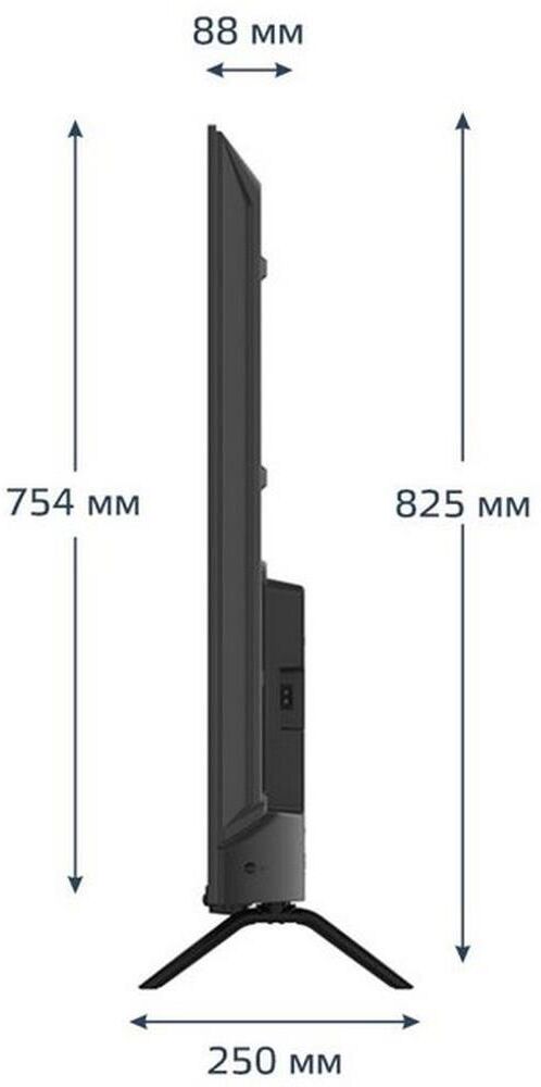 Диагональ экрана 58" (146 см)UHD (FRAMELESS) official google android TV, memory 2-16G ANDROID 11. Системы цветности аналогового ТВ: SECAM, PAL Системы цветности для AV: NTSC, PAL Цифровой тюнер DVB-Т/Т2/С/S2 SMARTTV Wi-Fi Декодеры стереозвука NICAM, А2, АСЗ Формат изображения: 16:9 Разрешение экрана 3840х2160 Динамический контраст 140000:1 Яркость 300 кд/м2 Угол обзора (гор/верт) 178°/178° Цифровой 3D фильтр Количество цветов 1 млрд. Время отклика 6,5 мс Меню на русском, английском языках Телетекст Аудио 2х 10Вт Входы/выходы: Антенный вход Вход для спутниковой антенны Композитный видео/аудио вход Аудио выход 3х HDMI 2 х USB CI слот LAN COAX Питание: Напряжение100- 240 В ~ 50/60 Гц Максимальная потребляемая мощность 125 Вт Потребляемая мощность в режиме ожидания — 0,5 Вт Удельная мощность рабочего режима: 0,013 Вт/кв.см Потребляемая мощность в выключенном режиме: О Вт Размеры с подставкой: 1284 х 825 х 250 мм Размеры без подставки:1284 х 754 х 88 мм Вес: 11,6 кг VESA: 200х200 мм