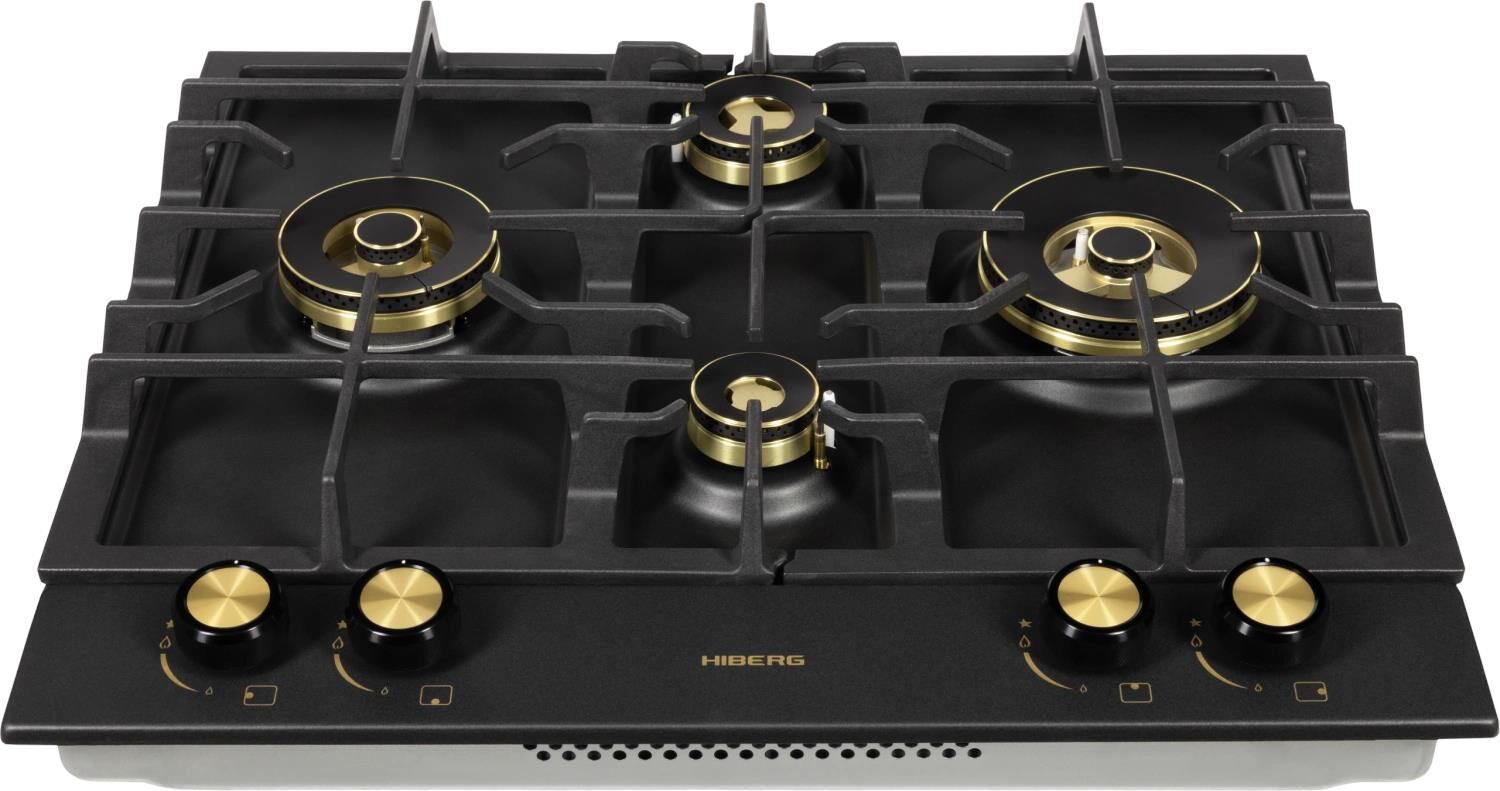 Латунные энергоэффективные конфорки; электроподжиг; ГАЗ-контроль, решетка: чугунная; 2хWOK, WOK-конфорка c разделяемым пламенем; цвет поверхности: матовый черный; цвет ручек: черный+бронза; Ширина (см) 58,4; Глубина (см) 51;