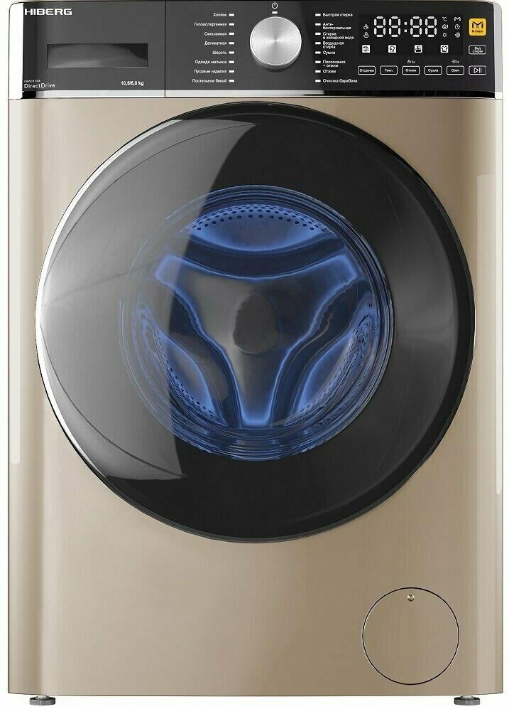 Тип загрузки: фронтальная; Максимальная загрузка белья: 10.5 кг; Инверторный двигатель: да; Максимальная скорость отжима: 1400 об/мин; Тип управления: сенсорное; Цвет: золотистый; Сушка: есть; Тип сушки: по времени