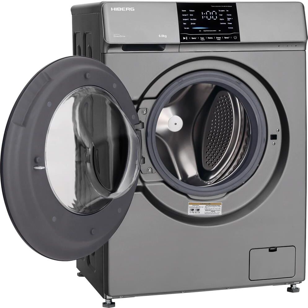 (Ш*Г*В) 59,5*51*85см.Мотор Direct Drive Inverter Motor А+++, 16 программ, Максимальная загрузка белья – 6 кг Скорость отжима max 1200 об, Защита от протечек -полная (AQUA STOP) Объем бака – 41 л, Диаметр двери – 58 см,, Материал барабана – нерж. Сталь, Материал Корпуса – Полипропилен, Система управления дисбалансом, Система обнаружения ошибок, Блокировка от детей Напряжение, частота 220-240В/50Гц Цвет — Темно-серый