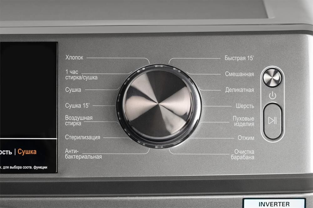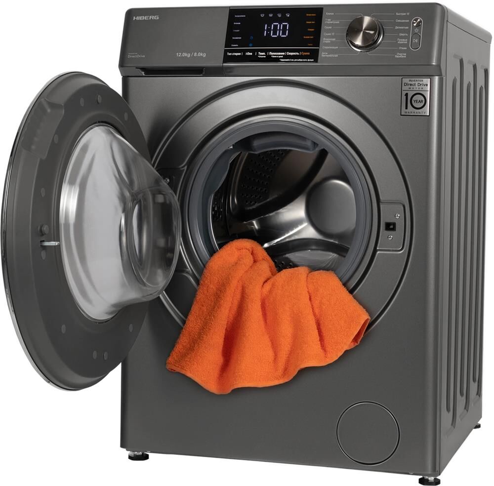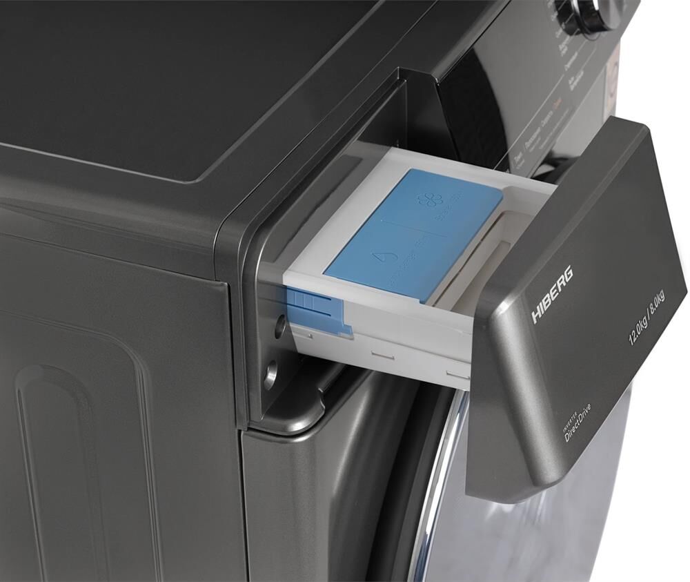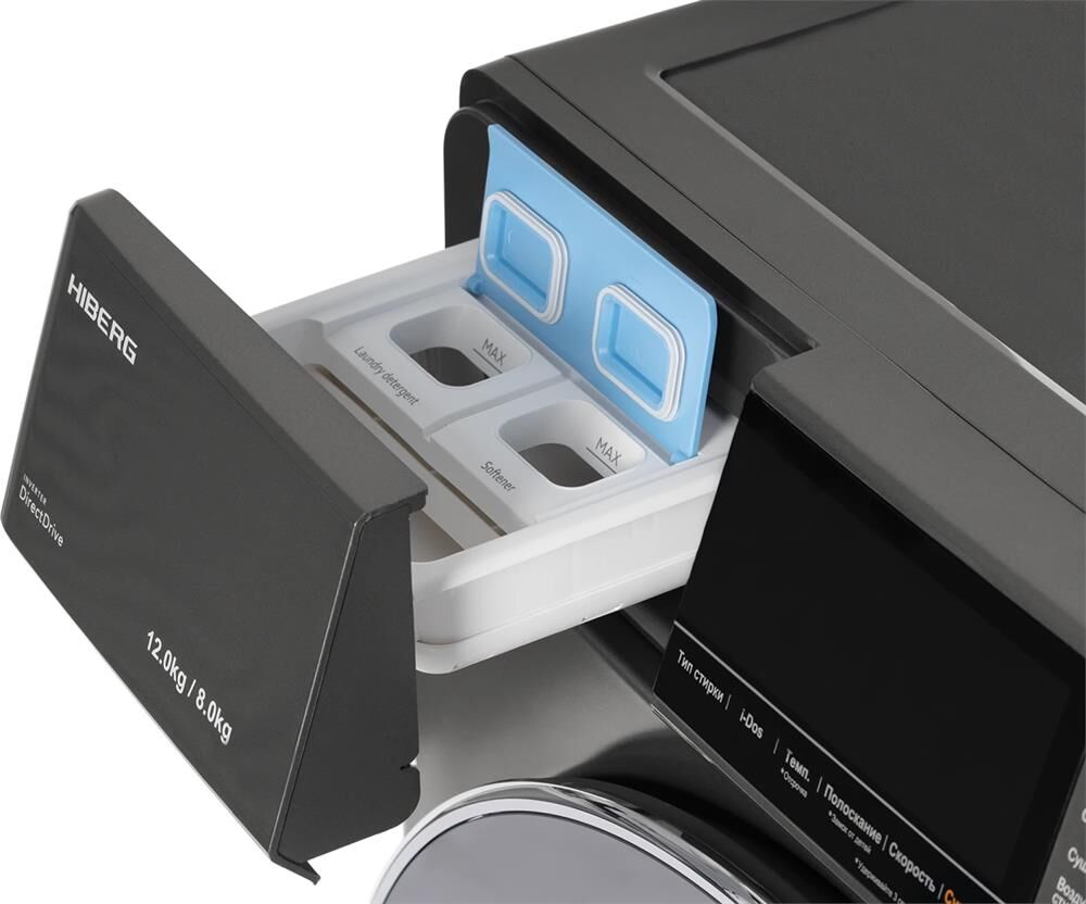 (ШхГхВ)59,5х64х85см. Цвет корпуса Темно-серый.Цвет люка Черный.Тип двигателя ИнверторныйТип привода Прямой привод.Управление Электронное сенсорное LED-дисплей.Максимальная загрузка белья при стирке (кг) 12.Максимальная загрузка белья при сушке (кг) 8.Максимальная скорость отжима (об/мин.) 1400 Количество программ стирки 14.Класс энергопотребления A+++.Энергопотребление (кВт*ч/год) 275.Потребление воды за 1 цикл стирки (л) 65.Класс стирки А.Класс отжима А.Класс сушки A.Диаметр дверцы (см) 52.Максимальный угол открывания дверцы люка (градусов) 150.Материал барабана Нержавеющая сталь.Уровень шума при стирке (дБ) 50.Уровень шума при отжиме (дБ) 72.Контроль пенообразования.Контроль дисбаланса.Контроль скорости отжима.Регулировка температуры стирки до 90 С.Индикация процессов и программ.Отсрочка старта Есть, до 24 ч.Блокировка от детей.Быстрая стирка 15 минут.Автодозировка стирального порошка i-Dos.Дополнительное полоскание.Дозагрузка