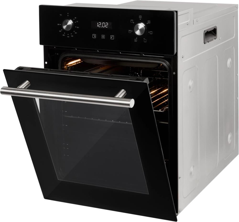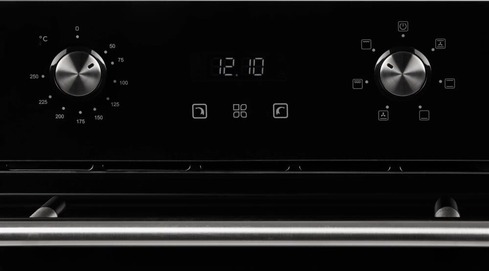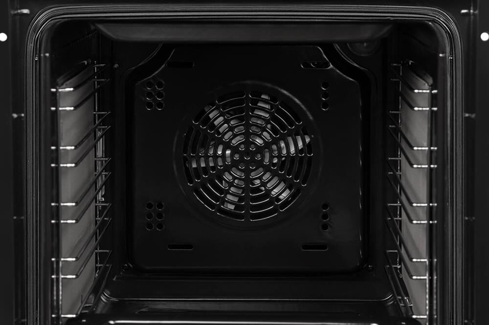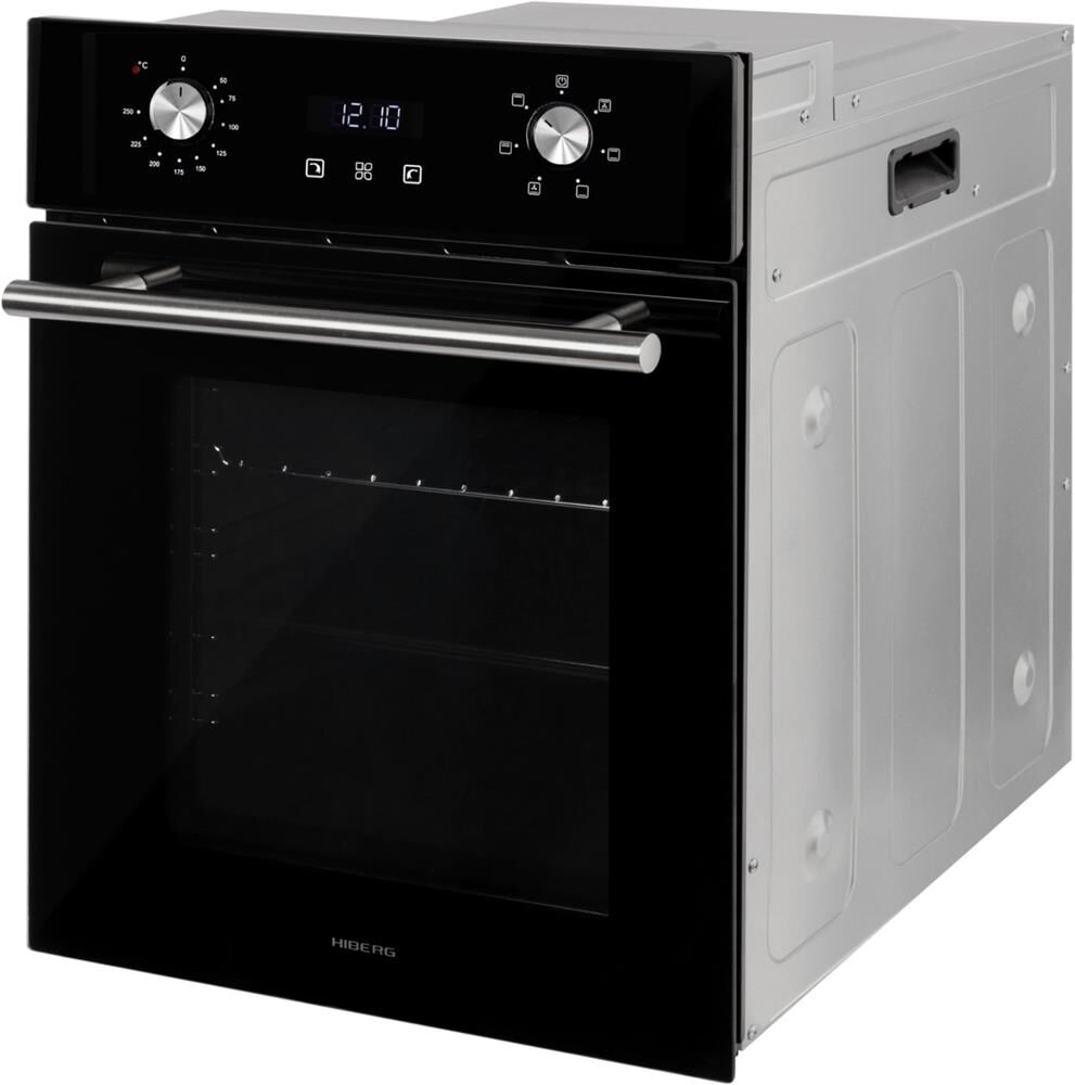 ШхГхВ: 450*565*595мм; электрическая; 50 л; 6+1 режимов; подсветка; конвекция; гриль; Дисплей; таймер сенсорный; хромированные направляющие, съемное внутреннее стекло дверцы,система охлаждения духовки, противень, решетка, фасад: черное стекло; ручки: металл