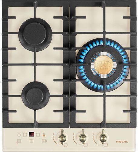 Встраиваемая газовая варочная поверхность HIBERG VM 4535 Y из закаленного стекла в бежевом цвете, оснащена 3 конфорками и функциями: автоматический «электророзжиг», «газ-контроль» и сенсорный таймер отключения. Компактная рабочая поверхность выполнена из закаленного стекла — прочного и долговечного материала, на ней располагаются три конфорки разных по диаметру и мощности огня. WOK конфорка мощностью 3,4 кВт позволяет ускорить закипание воды и использовать интенсивную скорость прожарки. Мощность любой горелки можно регулировать с помощью поворотных переключателей. Для удобства пользования варочной панелью в переключатели встроен «электророзжиг», который позволит одним нажатием руки легко включить нужную конфорку без использования спичек. В варочной поверхности эффективно продумана система безопасности при утечке газа. В случае пролива жидкости на варочную панель или затухания пламени от сквозняка, в конфорке срабатывает функция газ-контроль и подача газа прекращается. Сенсорный индивидуальный таймер для каждо
