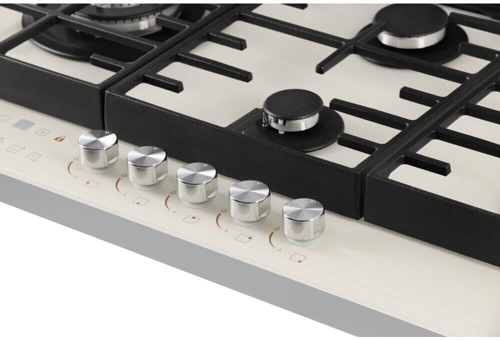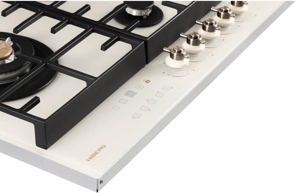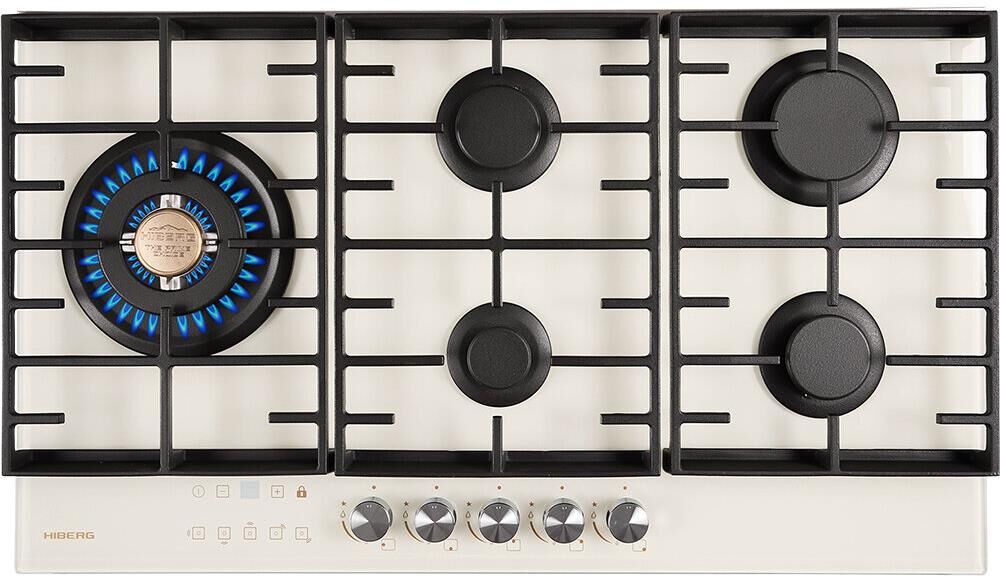 Ширина x Глубина x Высота 96,5*56,5*17 см, поверхность из закаленного стекла; электророзжиг; газ-контроль; сенсорный таймер отключения газа на каждую конфорку; WOK конфорка; чугунные решетки; 2 комплекта ручек;