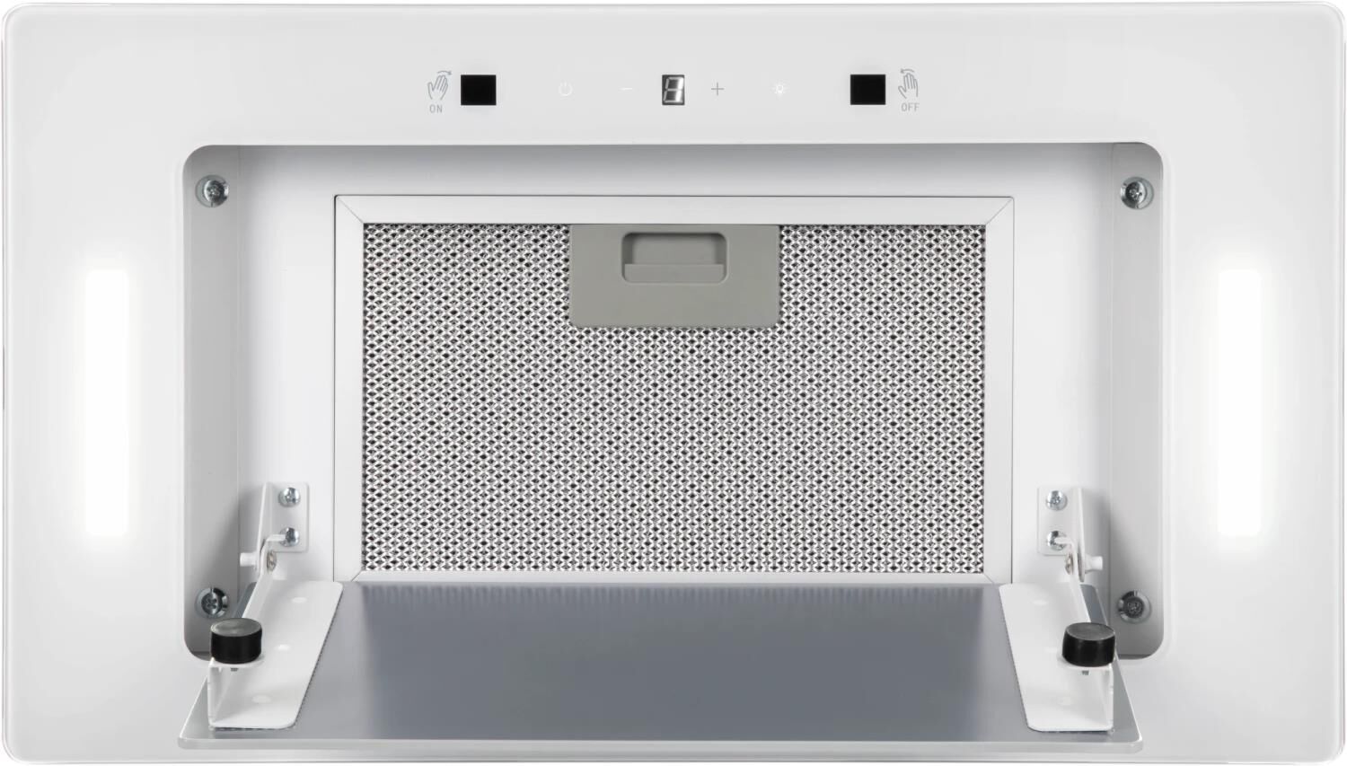 Полновстраиваемая вытяжка с сенсорным и бесконтактным управлением, 3 уровнями скорости и высокой мощностью двигателя 280 Вт, фасадом из закаленного стекла, производительность 900 куб.м/ч, Управление и режимы- сенсорное управление; управление жестами без