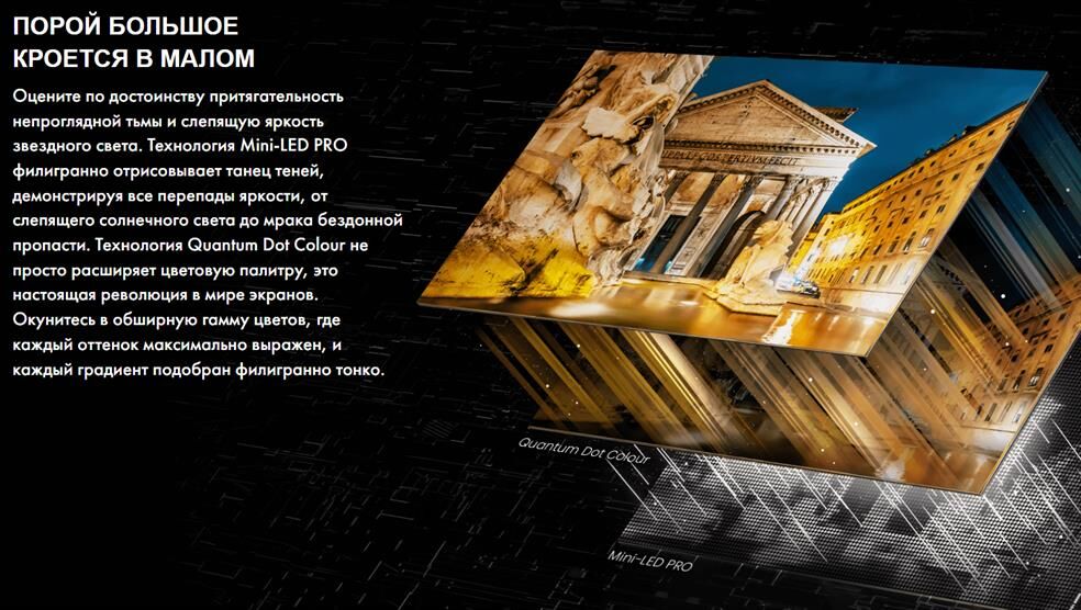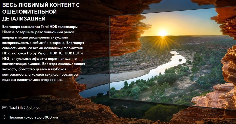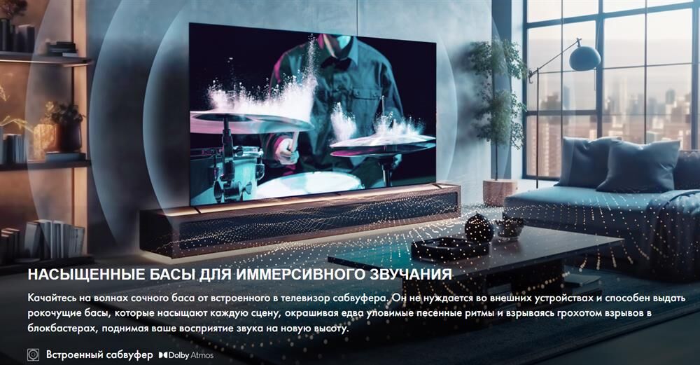 Диагональ 75" (190 см) Разрешение 3840 x 2160 Соотношение сторон 16:9 Тип панели QLED Яркость экрана 500 кд/м2 Контрастность 2.000:1 Время отклика пикселя 6 мс Углы обзора 178 по горизонтали, 178 по вертикали Частота обновления 120 Гц Тип подсветки Mini-LED Цифровой и Аналоговый Тюнер DVB-T2/T/C/S2/S Мощность акустики 2 x 15 Вт Встроенный сабвуфер есть Мощность сабвуфера 20 Вт Акустическая схема 2.1 Процессор изображения MT9618 Стандарт разрешения экрана 4K Ultra HD Поддержка HDR есть Технология HDR Dolby Vision, HDR10, HLG, HDR10+ Встроенный Wi-Fi есть Встроенный Bluetooth есть Операционная система VIDAA U7.6 Поддержка SMART TV есть Игровой режим есть Голосовое управление есть Размеры с подставкой (ШxВxГ) 1673 x 1032 x 338 мм