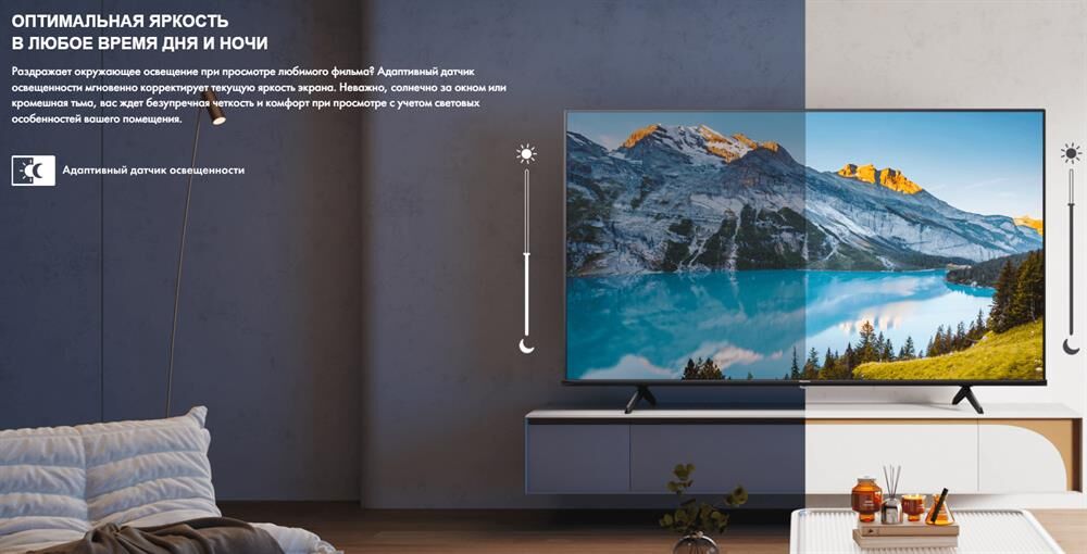 Диагональ 65" Тип матрицы VA Технология квантовых точек Есть Широкая цветовая гамма Есть Соотношение сторон панели 16:9 Время отклика панели 8мс Видимая площадь экрана (см^2) 11478.1 Глубина цвета TCON 8 Bit + FRC Уровень черного 0.1 нит 4K HDR Immersive Есть Режим Filmaker Есть Глубина Depth Enhancer Динамическое улучшение изображения Pixel Tuning Формат экрана 16:9 Разрешение экрана 3840×2160 Угол обзора 178° Глубина цветопередачи 8 бит+технология FRC Индекс частоты обновления 60Гц Яркость 350 нит Технология подсветки QLED & DLED Уровень игрового режима 60Гц Game Mode Plus HSR 120 Гц VRR (Переменная частота обновления) 48-60 Гц Колонки 2.0 ch Мощность звука 2*10 Вт AC-4 Есть Пользовательский эквалайзер Есть Обработка звука Dolby MS12, DTS X Частота 50/60Гц Потребляемая мощность 190Вт Класс энергоэффективности SDR E Класс энергоэффективности HDR G VESA Кронштейн Совместимый 300×400 мм Цифровой и Аналоговый Тюнер DVB-T2/T/C/S2/S Акустическая система Dolby Atmos NICAM / A2 Стерео Есть
