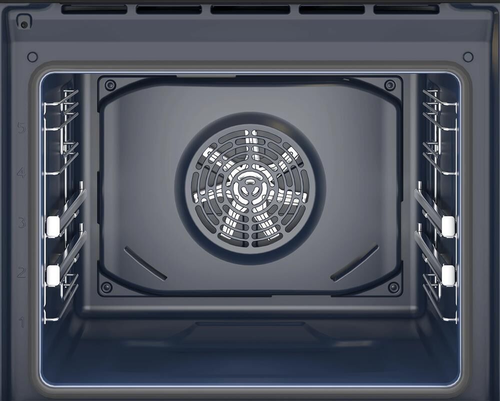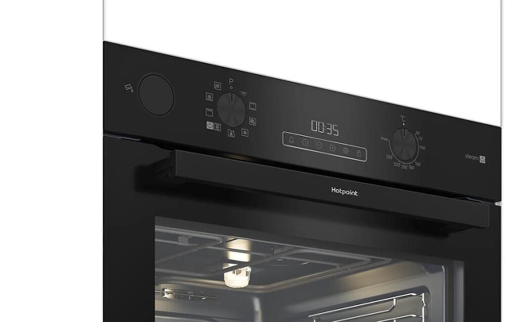 Электрический духовой шкаф; 9 программ: 3D приготовление, нижний нагрев+вентилятор, верхний и нижний нагрев, вентиляционный нагрев, разморозка, экономичный режим (нагрев с вентилятором), внутренняя подсветка, гриль, приготовление с паром, очистка паром; резервуар для приготовления с паром; дисплей; утапливаемые поворотные переключатели; панель управления из стекла; плавное закрытие и открытие дверцы; система очистки паром; телескопические направляющие на двух уровнях; объем — 72л.; 3 стекла дверцы; 1 решетка; 1 противень; 1 глубокий противень; цвет — черный