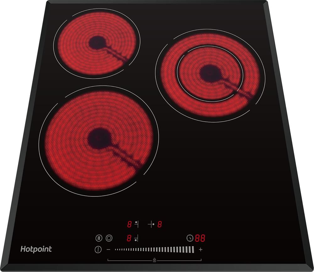Стеклокерамическая варочная поверхность шириной 45см; 3 зоны, двойная зона расширения, сенсорное управление — слайдер, таймер на 99 минут; защита от детей; функция StopnGo; скошенные края по периметру; цвет — черный, 54,5х11,5х63,5