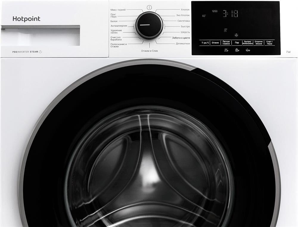 Загрузка 7 кг; скорость отжима 1200 оборотов в минуту; D7S дисплей (сенсорное управление); тип мотора: PRO-Inverter (инверторный); сегмент: slim (узкая стиральная машина); количество программ: 15, в том числе Хлопок, Эко Хлопок, Синтетика, Быстро, Шерсть, Забота о цвете, Деликатное, Микс тканей, Пух/Перо, Белое, Антиаллергия, Удаление пятен, Очистка барабана, Полоскание и Отжим, Отжим и слив; функция: Пар; функция: Легкая глажка; функция: Быстро / Интенсивно; функция: Дополнительное полоскание; функция: Предварительная стирка; выбор температуры / скорости отжима; отсрочка запуска / блокировка кнопок; цвет корпуса/панели управления: белый / белый; цвет двери: черный; серебряные элементы. ВхШхГ 86х59,5х44,3