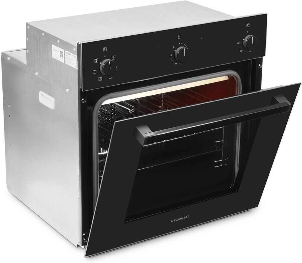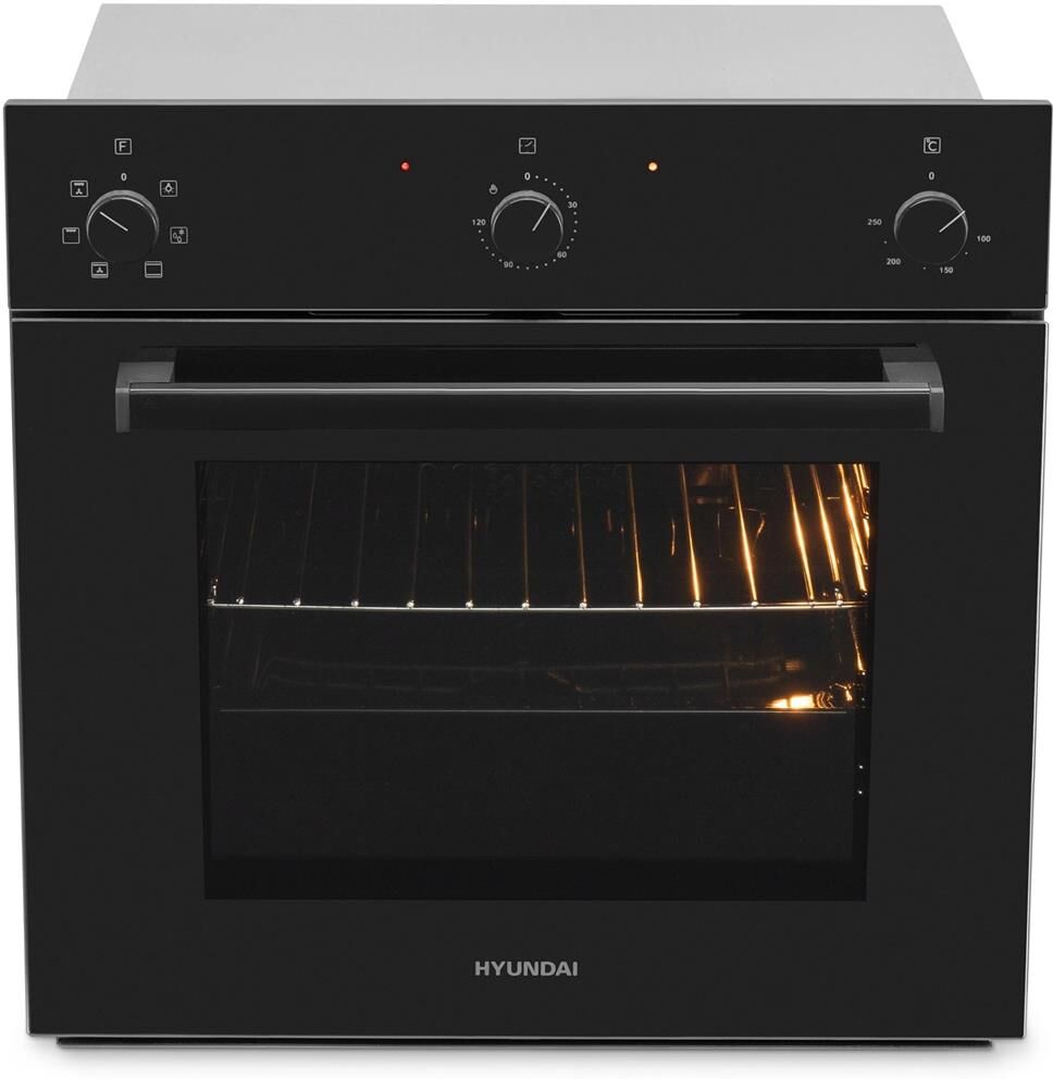 Бренд; HYUNDAI; Цвет; черный; Тип духовки; электрическая; Установка; независимая; Объем духовки; 64 л; Класс энергопотребления; A; Мощность подключения; 2.28 кВт; Размеры (ВхШхГ); 60 х 59.6 x 54 см; ; Режимы; Режимы нагрева; верхний нагрев + нижний нагрев, гриль, гриль + конвекция, Верхний + нижний нагрев + конвекция, Размораживание; Число автоматических программ; 5; Функция СВЧ; нет; Гриль; да; Тип гриля; электрический; Конвекция; да; ; Управление; Управление со смартфона; нет; Тип поворотных переключателей; механические; Утапливаемые переключатели; да; ; Особенности; Дополнительные функции; быстрый нагрев, Вентилятор охлаждения, Полностью стеклянная внутренняя дверца; Электроподжиг; нет; Газ-контроль; нет; Дверца духовки; откидная; Очистка духовки; Традиционная; Число стекол дверцы духовки; два; Безопасность; защитное отключение, Защита от перегрузки (автоматический предохранитель)