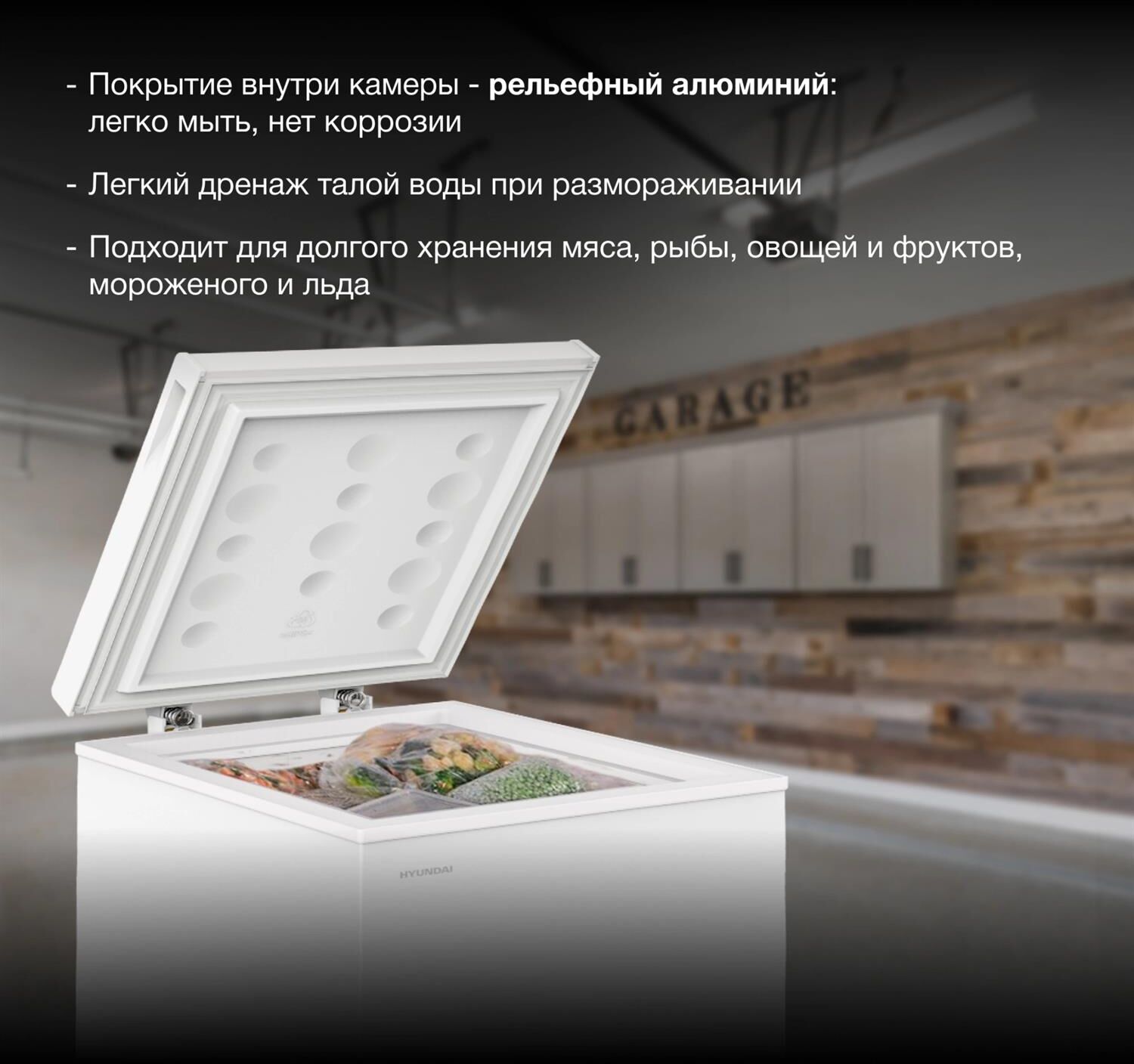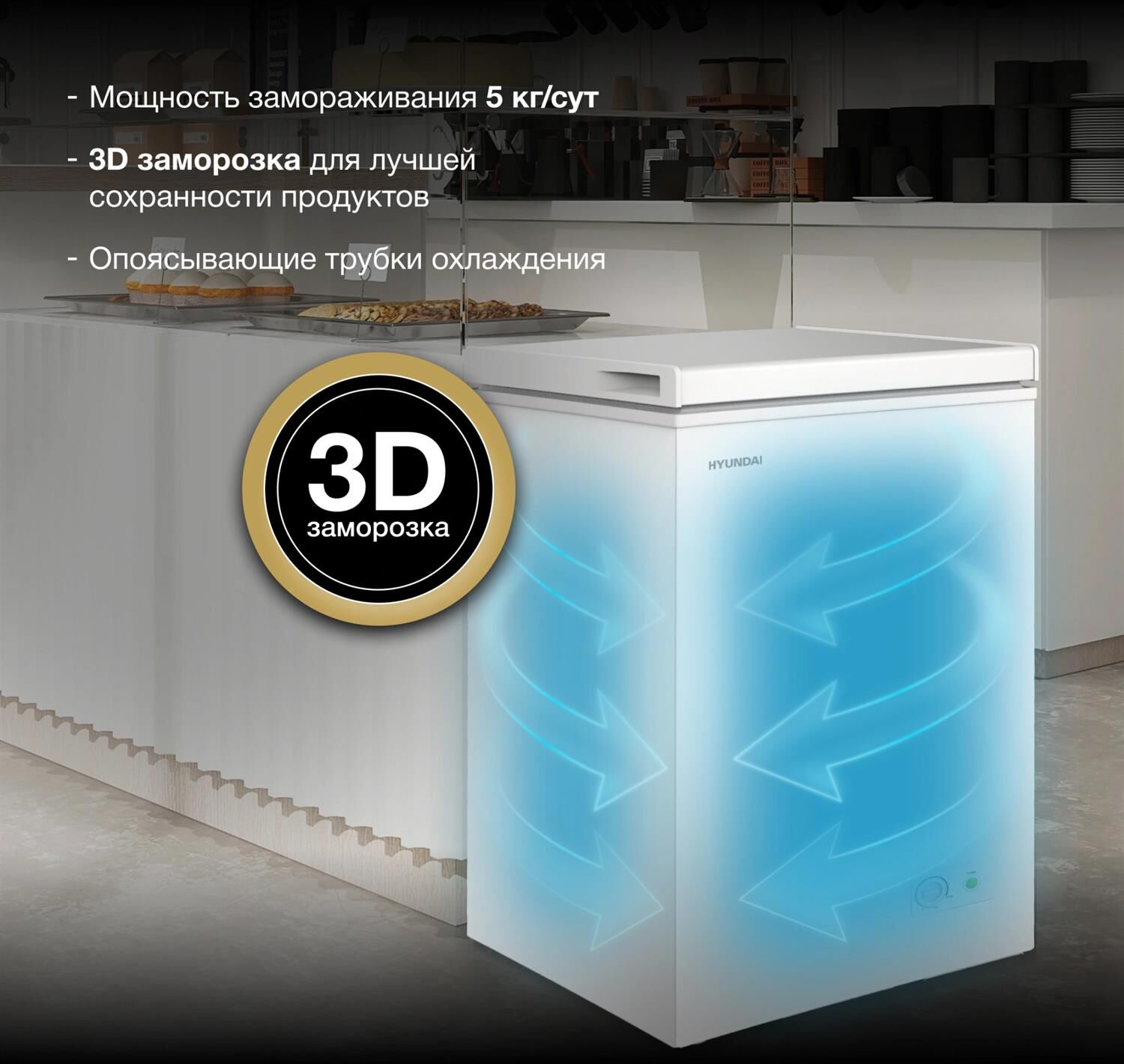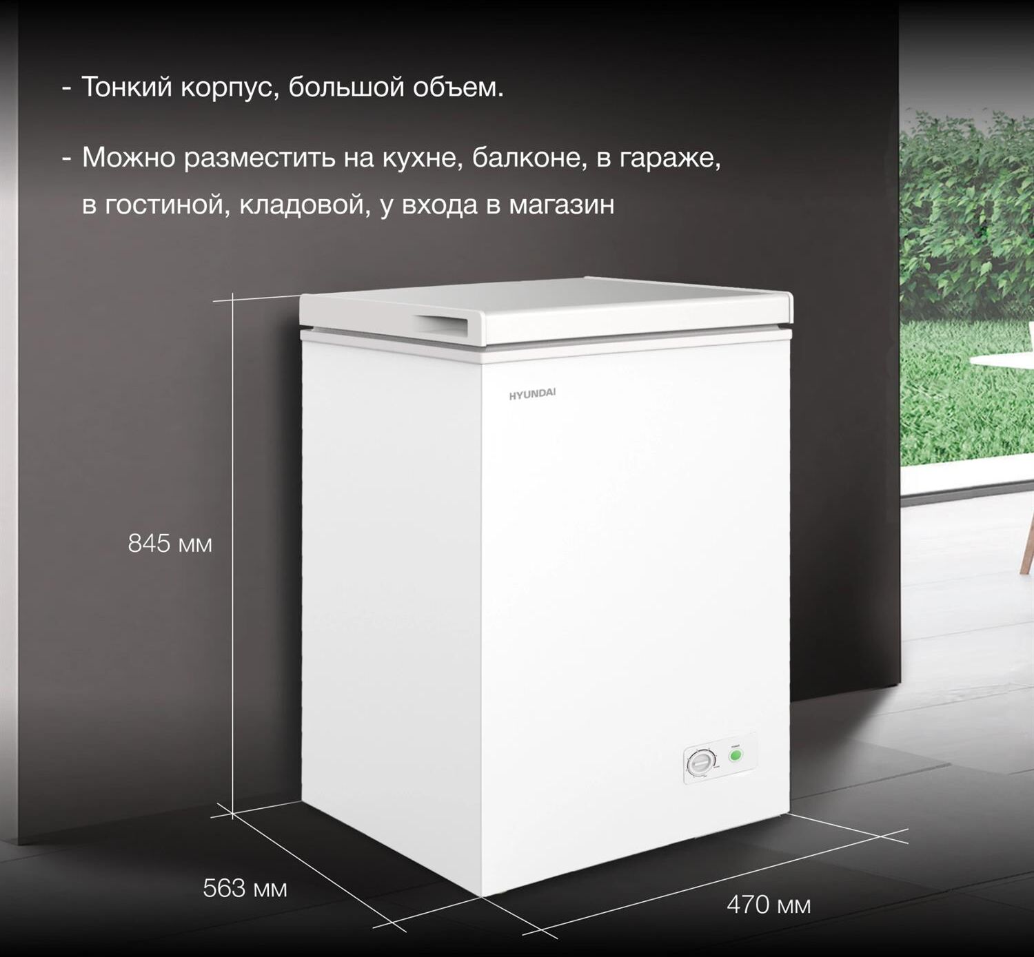 Hyundai Морозильный ларь, Полезный объем 92 Литров, Размораживание Ручное, ВШГ 84,5 x 47 x 56,3 см, Энергопотребление A+, Уровень шума дБ 41