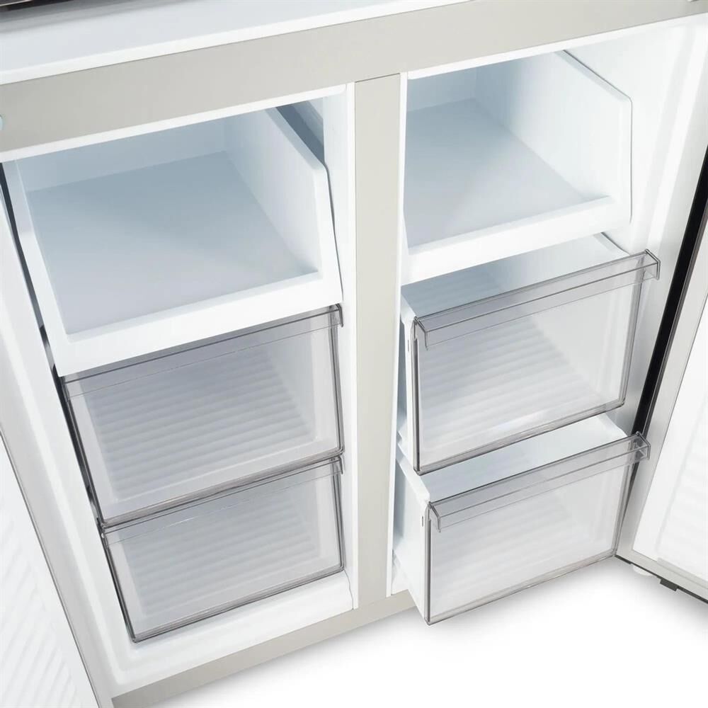 Основные характеристики Тип управлениясенсорное ХладагентR600a 55гр Климатический классN, SN, ST Инверторный компрессорДА Класс энергопотребленияA++ Уровень шума37 дБ Полезный объем холодильника405 л Полезный объем холодильной камеры270 л Полезный объем морозильной камеры135 л Тип размораживания холодильной камерыNo Frost Тип размораживания морозильной камерыNo Frost Конструкция Side by SideДА Cross doorДА Количество дверей4 шт Количество камертрехкамерный Наличие морозильной камерыДА Расположение морозильной камерыснизу Тип дисплеявнешний Количество полок в холодильной камере3 Количество полок в морозильной камере2 Количество ящиков в холодильной камере3 Количество ящиков в морозильной камере4 Количество полок на дверце6 Функции Хранение при отключении питания10 ч Питание Потребление энергии287 кВт*ч/год