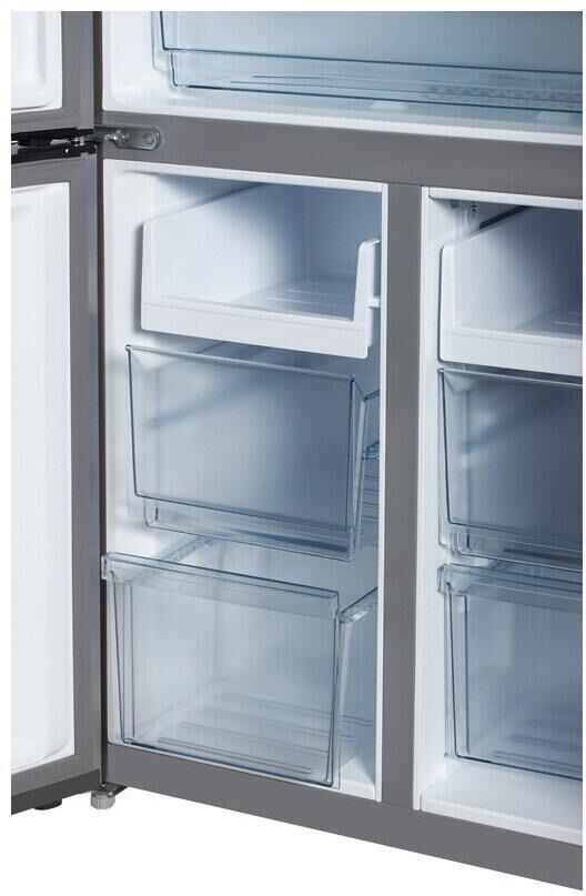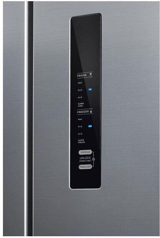 Многодверный холодильник (Cross door). Общий полезный объем: 456 л. Полезный объем холодильной камеры: 303 л. Полезный объем морозильной камеры: 153 л. Система размораживания Total Nofrost. Тип управления: сенсорное (внешний дисплей). Ящик для овощей и фруктов. Уровень шума 38dB(A). Класс энергопотребления: А+. Цвет: нержавеющая сталь. Инверторный компрессор. Габаритные размеры без упаковки в*ш*г, см: 178х83,3х65,5. Вес бруто/нетто, кг: 96 /87. Гарантия 2 года