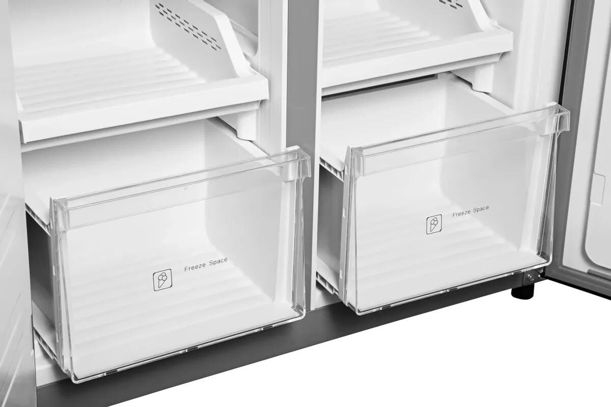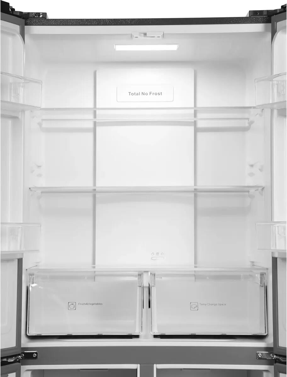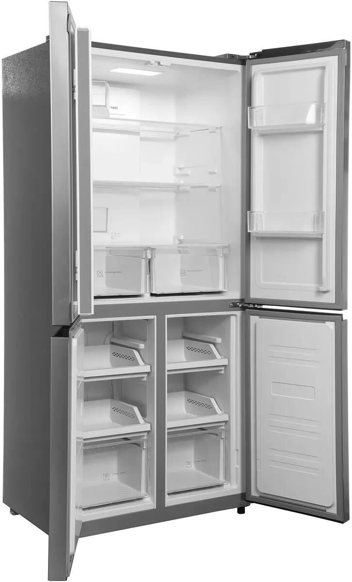 Тип управления сенсорное Хладагент R600a/75g Климатический класс T Тип компрессора инверторный Инверторный компрессор ДА Класс энергопотребления A+ Уровень шума 38 дБ Общий объем холодильника 485 л Полезный объем холодильника 433 л Полезный объем холодильной камеры 289 л Полезный объем морозильной камеры 144 л Тип размораживания холодильной камеры No Frost Тип размораживания морозильной камеры No Frost Технология размораживания холодильной камеры Full No Frost Технология размораживания морозильной камеры Full No Frost Side by Side ДА Cross door ДА Количество дверей 4 шт Количество камер трехкамерный Наличие морозильной камеры ДА Расположение морозильной камерыснизу Тип дисплеявнешний Количество полок в холодильной камере3 Количество полок в морозильной камере2 Количество ящиков в холодильной камере2 Количество ящиков в морозильной камере4 Количество полок на дверце6 Питание Потребление энергии369 кВт*ч/год Корпус Размеры83×185.5×65см Вес товара 80 кг. Серебро