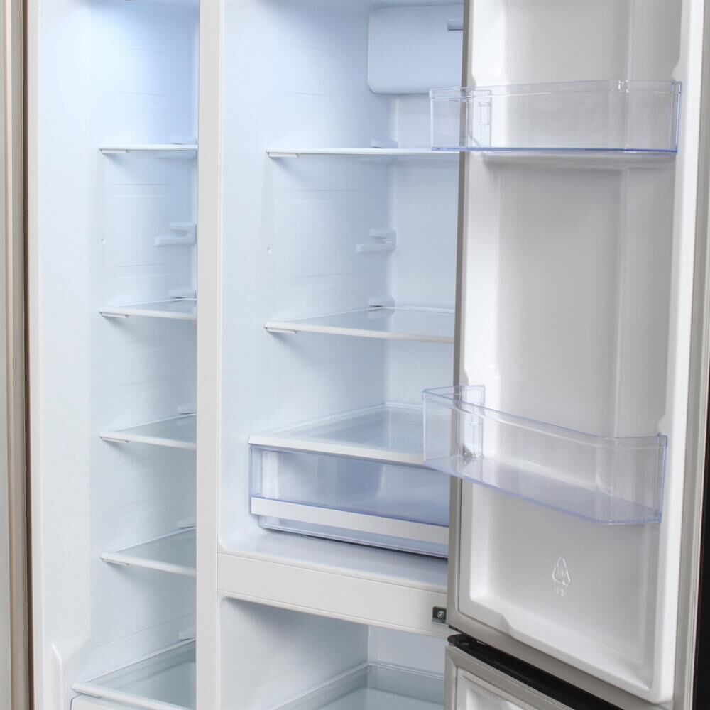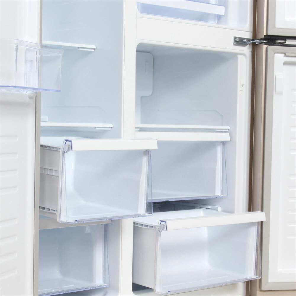 Холодильник Side-by-Side. Полезный объём: 459 л. Полезный объем холодильной камеры: 186 л. Полезный объем морозильной камеры: 167л. Универсальное отделение (от -4 до 8) Система размораживания Total Nofrost. Тип управления: сенсорное управление (внешний дисплей). Уровень шума 43dB(A). Класс энергопотребления: А+. Цвет:Шампань стекло. Инверторный компрессор. Габаритные размеры без упаковки в*ш*г, см: 183.0*91.1*65.6. Вес нетто/брутто: 86 / 96.