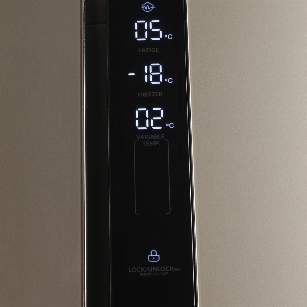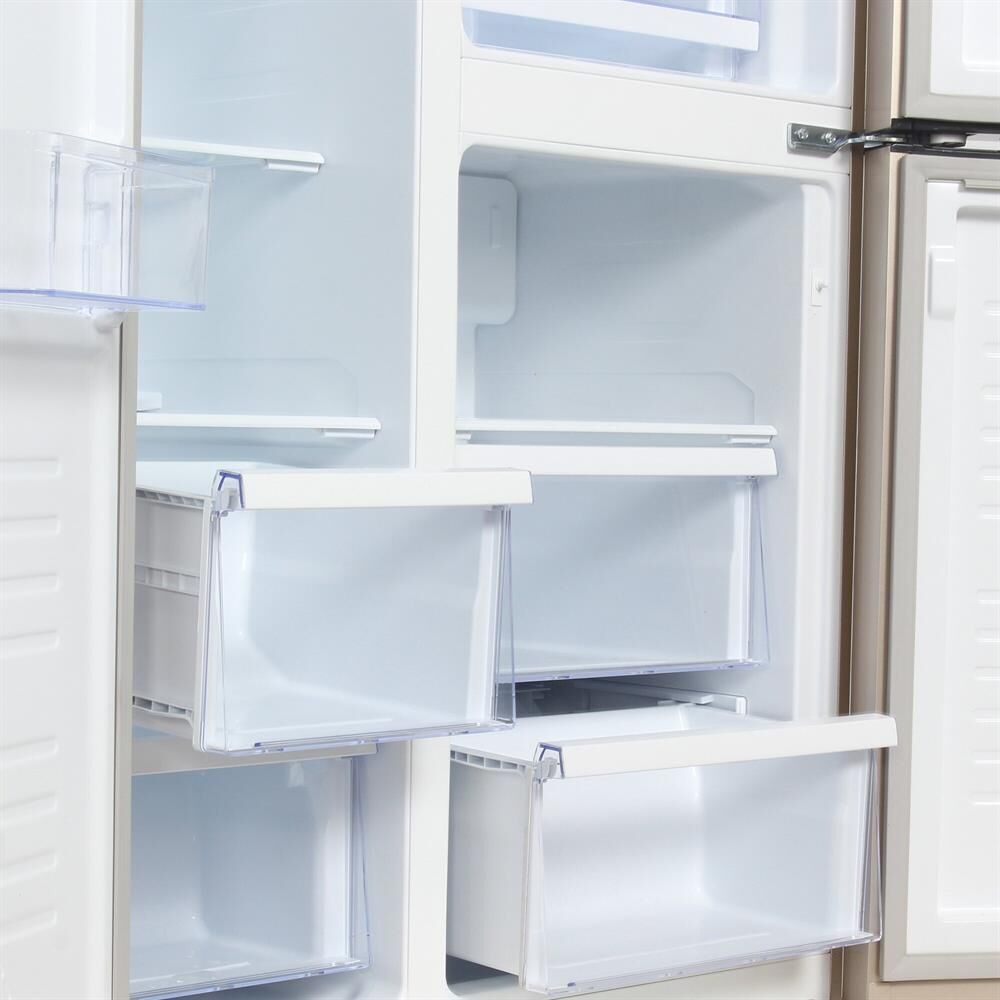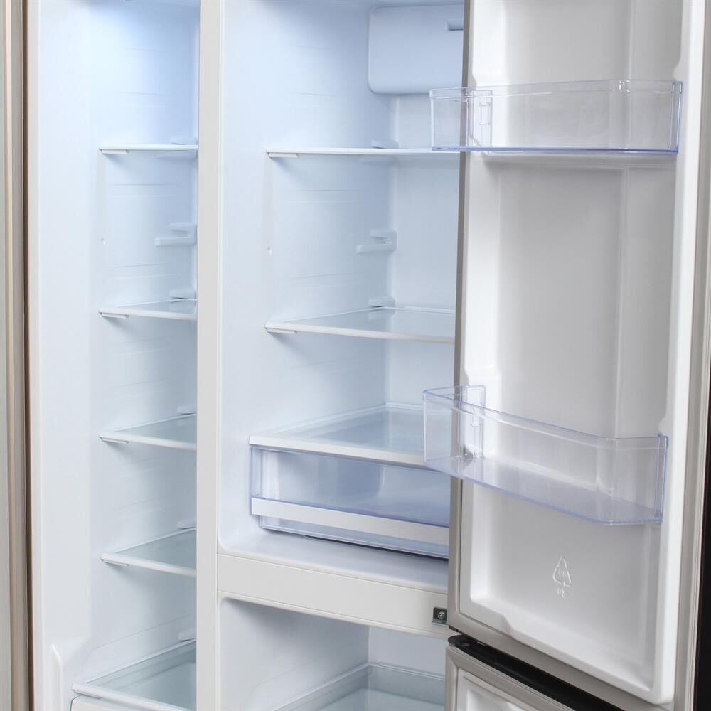Холодильник Side-by-Side. Полезный объём: 552 л. Полезный объем холодильной камеры: 329 л. Полезный объем морозильной камеры: 223л. Универсальное отделение (от -4 до 8) Система размораживания Nofrost. Тип управления: сенсорное управление (внешний дисплей). Уровень шума 43dB(A). Класс энергопотребления: А+. Цвет: шампань. Инверторный компрессор. Габаритные размеры в*ш*г, см: 183.0*91.1*65.6. Вес нетто/брутто: 86 / 96 кг. Инверторный компрессор. Гарантия 2 года
