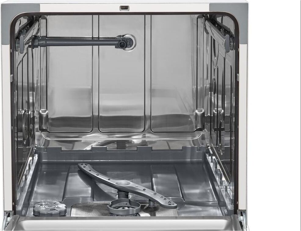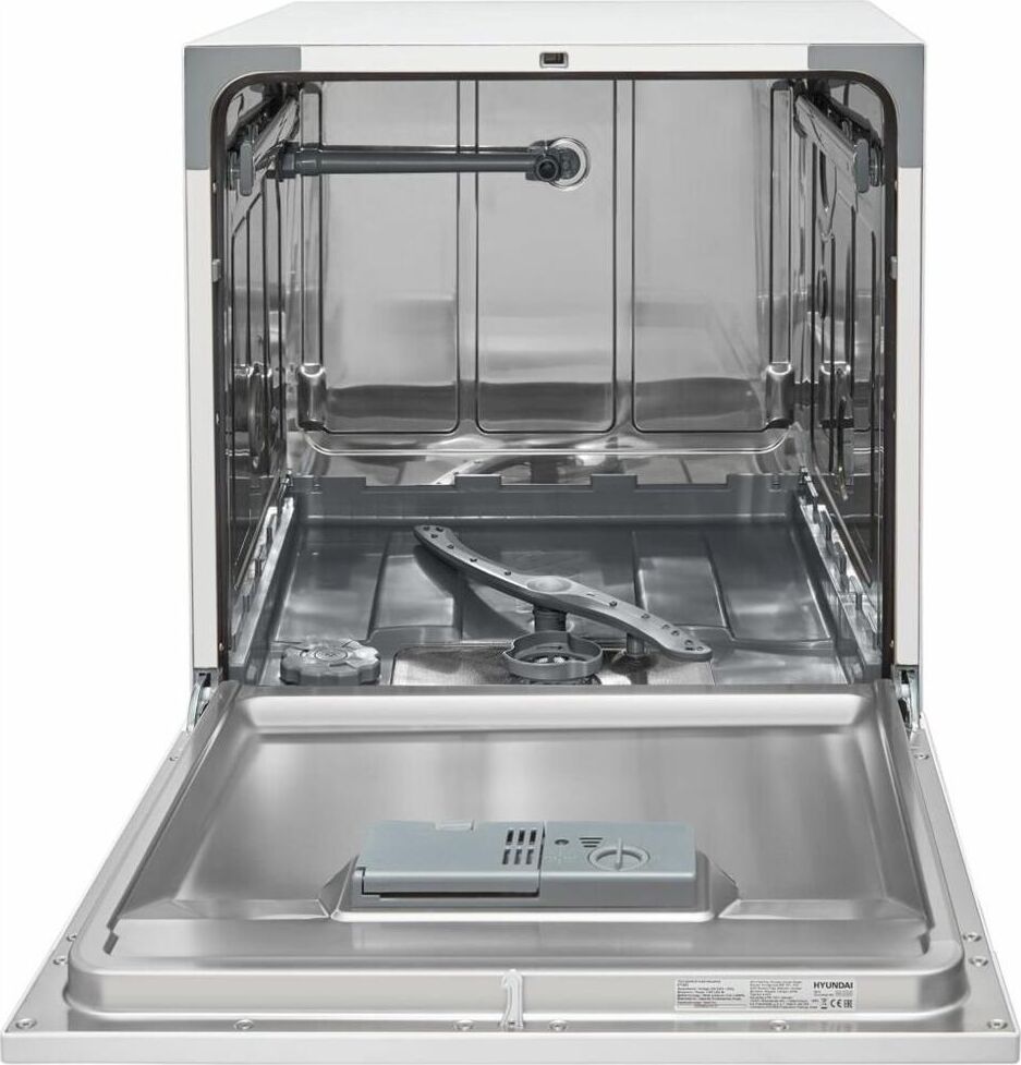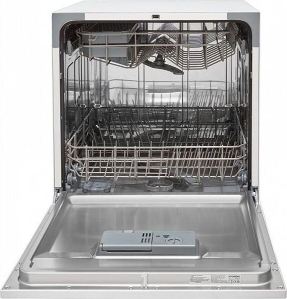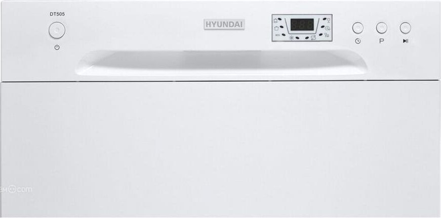 Посудомоечная машина HYUNDAI DT505 хоть и относится к компактному типу с настольной установкой, в нее помещается до 8 комплектов посуды. Для удобного размещения посуды предусмотрены две корзины, а два коромысла-разбрызгивателя обеспечивают качество мойки как в стационарных моделях. В посудомоечной машине предусмотрено 6 программ мойки, включая интенсивную и быструю мойку. Для удобства управления, в модели DT505 предусмотрен информативный дисплей, возможность отсрочки старта (до 24 часов), индикация наличия моющего средства и защита от самых любопытных людей на свете. Класс энергопотребления А+ экономит электроэнергию Максимальный уровень шума при работе менее 49 Дб Возможно использование средств 3 в 1 Есть возможность встраивания
