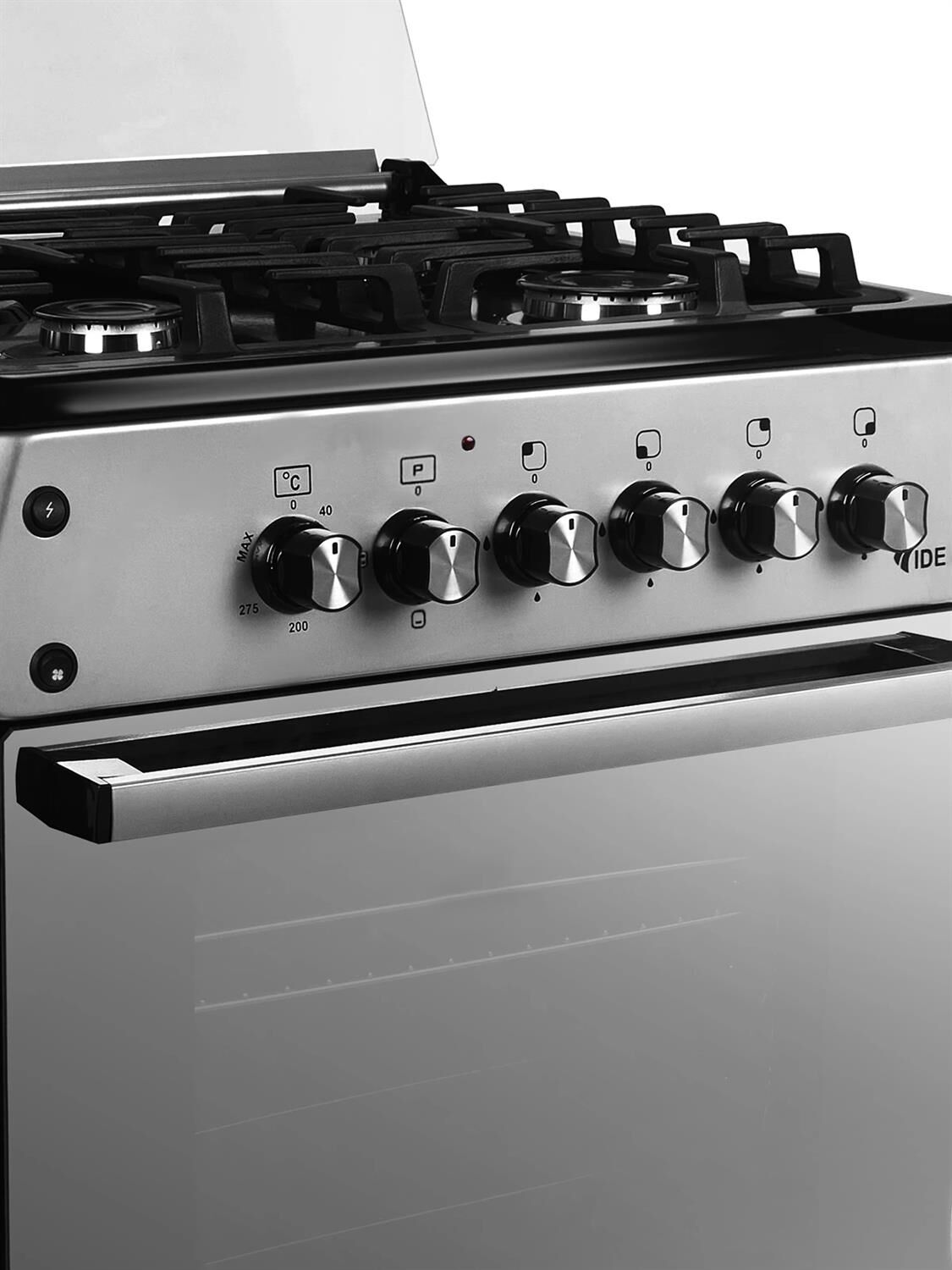 Ширина плиты 60 см. Газовые конфорки 4 шт; Стеклянная крышка рабочего стола; Электроподжиг рабочего стола; Духовка -электро; Чугунная решетка рабочего стола; 2-слойное остекление дверцы духовки; Конвекция, термостат. Подсветка духовки; Никелированная решетка духовки; Эмалированный противень — 2 штуки; Объем духовки 65 литров; Габариты плиты 60*85*60, вес 36 кг